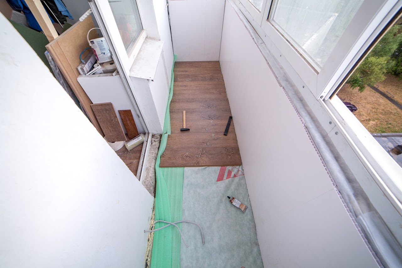 Pose de stratifié au sol du balcon et de la loggia