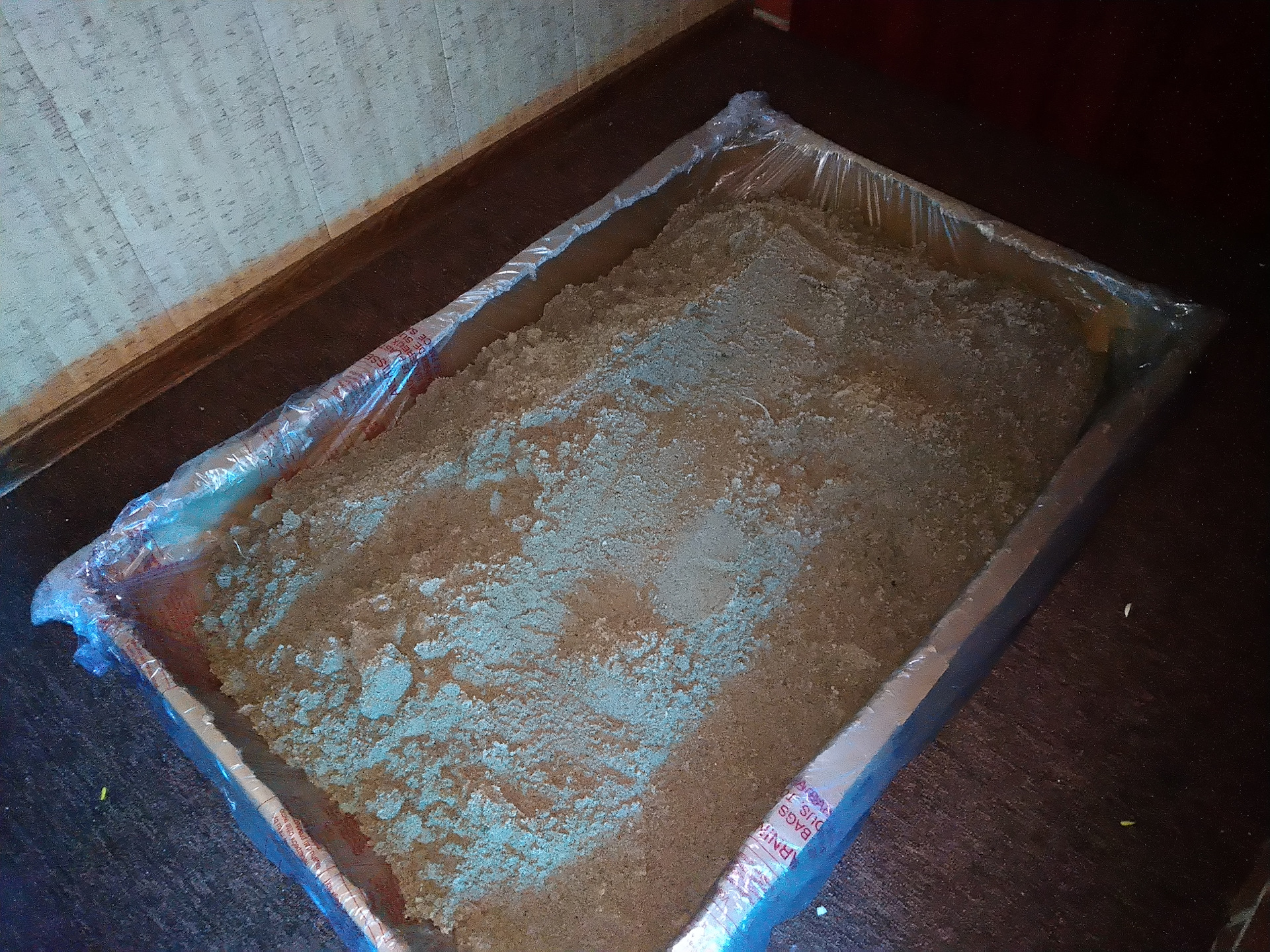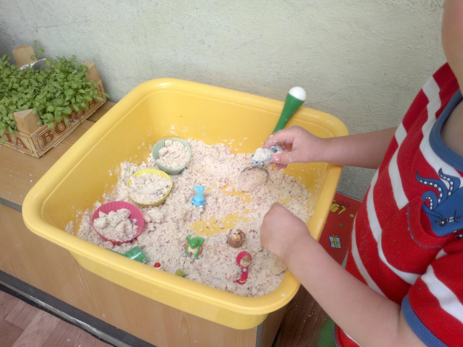 - remplissage sous forme de sable cinétique, coloré ou ordinaire (il peut être acheté dans une quincaillerie, ainsi que collecté dans un endroit écologiquement propre, puis nettoyé à fond);