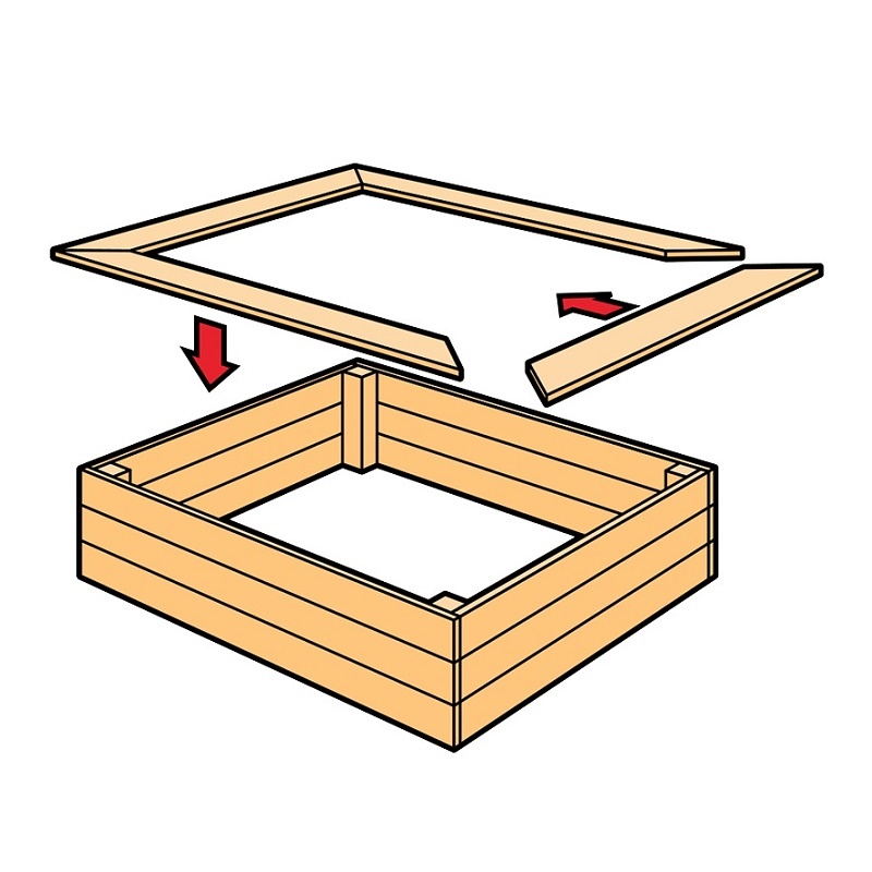 - pour une fondation solide, une ou plusieurs planches (selon la hauteur estimée du bac à sable) sont reliées à angle droit et fixées avec des vis;