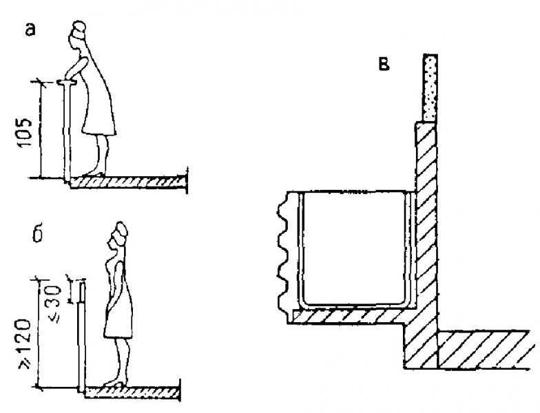- Dans certaines maisons de Khrouchtchev, il existe des normes pour la hauteur du parapet. La clôture doit s'élever à 1 m au-dessus du niveau de la dalle de plancher.