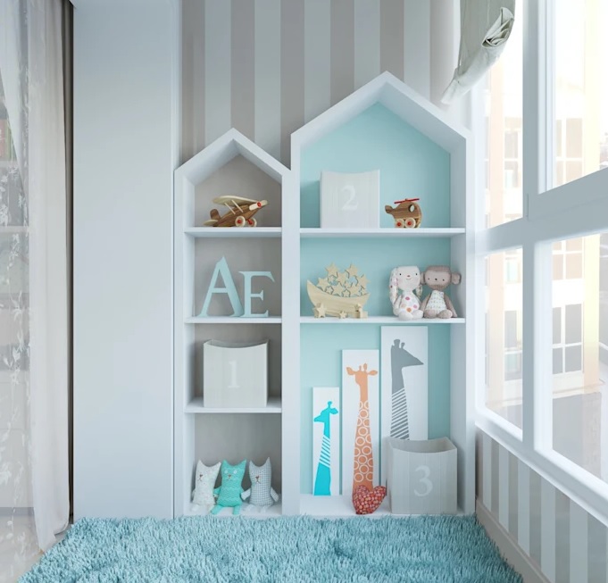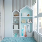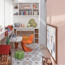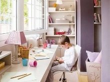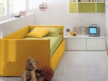 L'utilisation de mobilier modulaire (multifonctionnel) est encouragée. Mais lors du choix de tels kits, il est nécessaire de vérifier que toutes les fonctions sont effectivement exécutées, et non simplement déclarées. Compte tenu de l'individualité maximale des chambres d'enfants, il est nécessaire de commander des ensembles de meubles et de ne pas acheter d'articles prêts à l'emploi. C'est très bien si le lit contient des boîtes où vous pouvez mettre quelque chose, soulageant l'espace. Le coin est équipé d'un meuble avec étagères extérieures.
