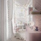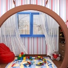 En plus du coin pour les jeux lui-même, il convient de souligner la zone avec le lit. Même les tout-petits, sans parler des adolescents, apprécient ce genre d'autonomie, lorsqu'ils peuvent passer presque toute la journée dans leur zone personnelle, sans traverser ni déranger personne.