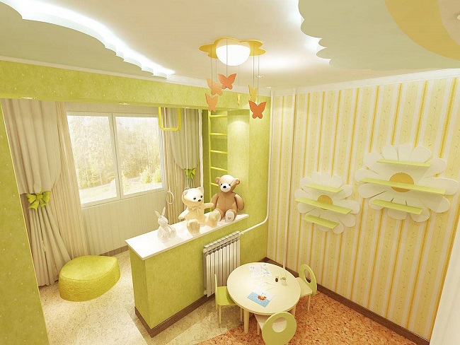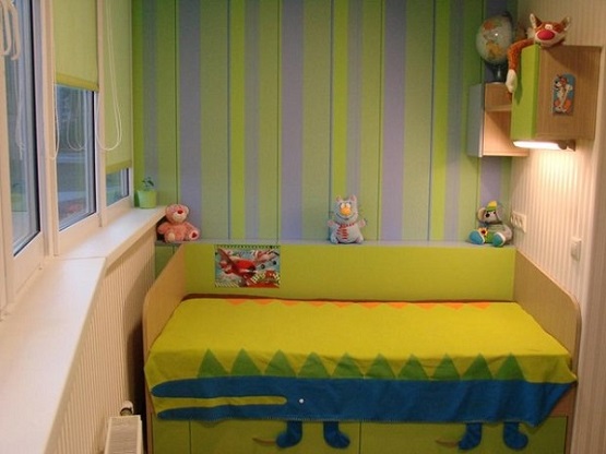 L'idée traditionnelle selon laquelle les enfants ne peuvent être décorés qu'en bleu ou en rose, selon qui jouera là-bas, est un non-sens. Il existe un grand nombre d'autres options, parfois très originales - il suffit de réfléchir un peu. Les balcons et les loggias sont principalement étroits, et par conséquent, les mouvements de conception doivent être pensés dans l'espoir de surmonter ce problème visuel.