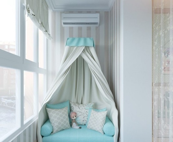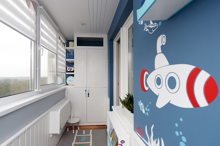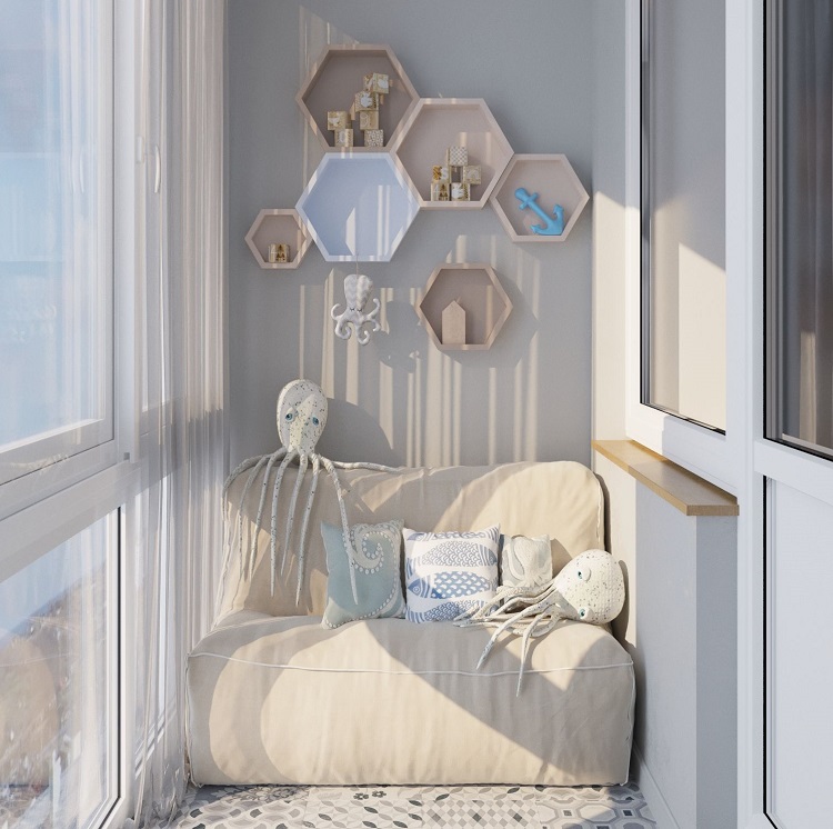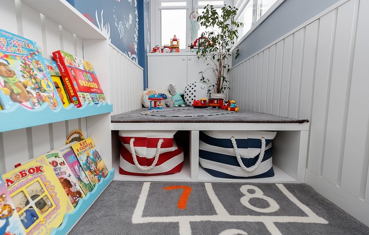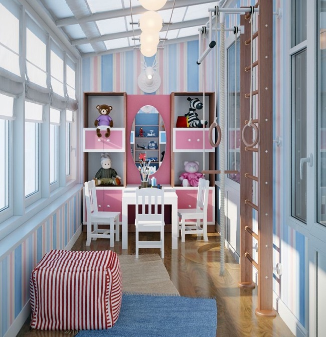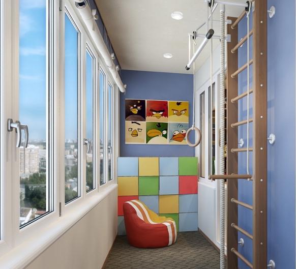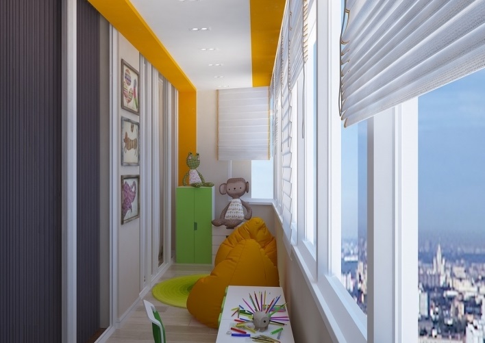 Une simple salle de jeux pour enfants sur la loggia est très ennuyeuse et non fonctionnelle. Même les enfants les plus actifs seront fatigués et s'arrêteront lorsqu'ils joueront. C'est utile s'ils n'ont pas à aller dans d'autres pièces à ce moment-là.