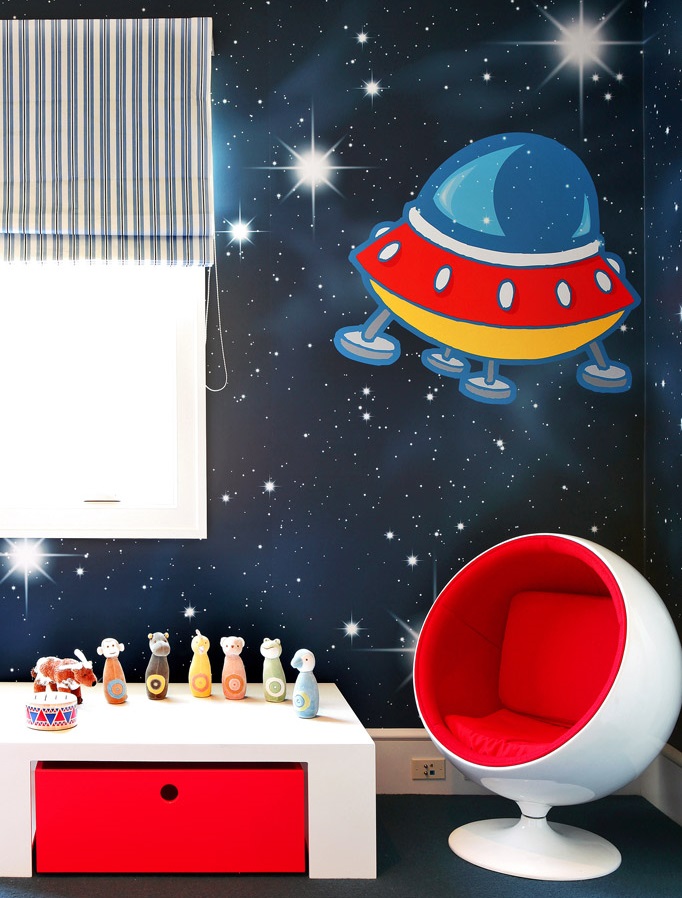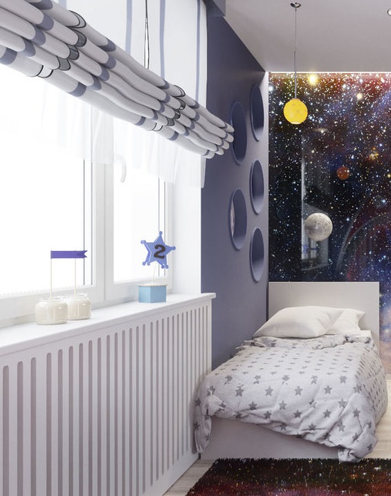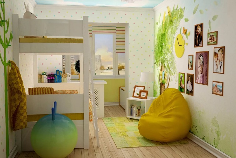 Les peintures murales, les dessins « drôles » et autres peuvent enchanter les jeunes enfants. Mais il vaut mieux proposer quelque chose avec une vision à long terme qui inspirera même à l'adolescence. Ainsi, vous n'aurez pas à effectuer une nouvelle révision majeure tous les 2-3 ans. Les couleurs très vives doivent également être évitées. Ils ont un effet émotionnel négatif, car de telles décisions ne sont acceptables que pour les adultes.