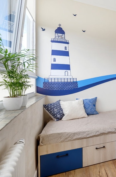 Presque tous les enfants sont romantiques et vous pouvez donc essayer le style marin. Il ne s'agit pas des stéréotypes blancs et bleus, il existe des options bien plus intéressantes. Par exemple, vous pouvez jouer le thème en combinant du "sable" jaune et de l'eau bleue. Mais vous pouvez aussi vous souvenir des vagues vertes de la mer. Et aussi de bons ajouts seront alors :