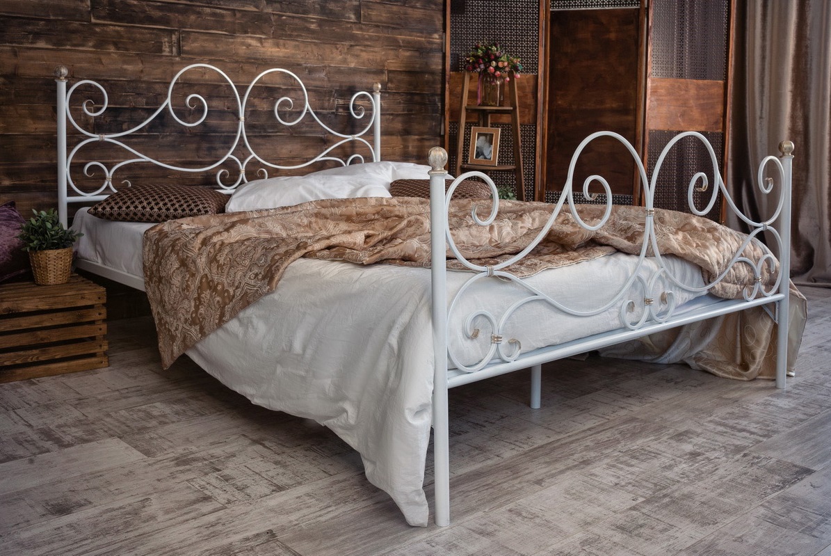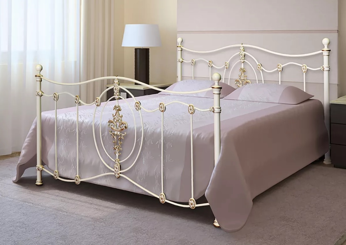 Le cadre des lits forgés est entièrement en métal. Pour leur fabrication, une grande variété de métaux est utilisée : fer, cuivre, aluminium, ainsi que des alliages : laiton, fonte, bronze.