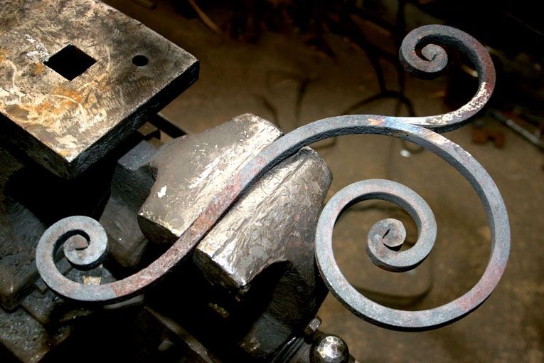Un moyen plus cher et exclusif - forgeage à chaud. Il est fait à la main, prend plus de temps et est plus créatif. Le métal est chauffé à 600-700°C, puis, à l'aide d'un marteau et d'une pince, donner manuellement au produit la forme souhaitée. Ensuite, les pièces sont soudées, polies, recouvertes d'un apprêt et d'une peinture, en l'occurrence blanche.