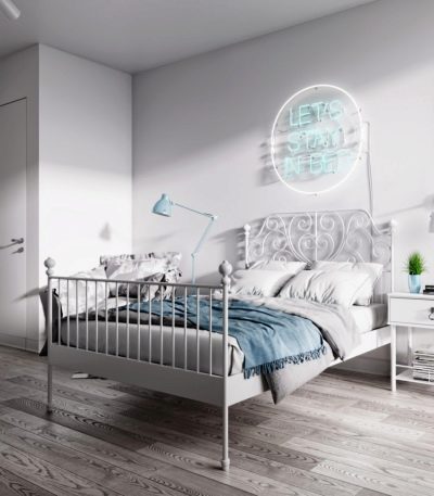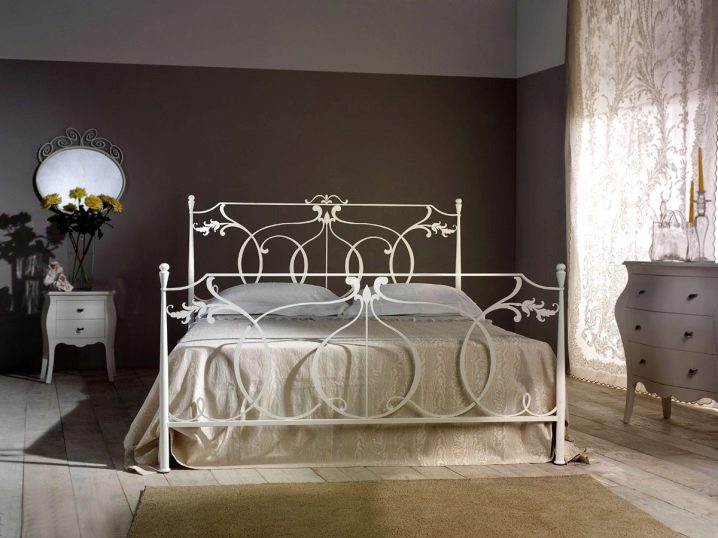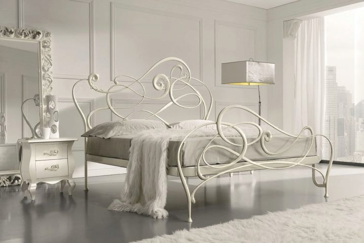 Un lit en fer forgé blanc s'adaptera à tous les styles d'intérieur. Cela dépend des préférences et des capacités de la personne, car quelqu'un aime un style scandinave modeste, campagnard ou provençal, quelqu'un préfère un style baroque luxueux ou un style Empire strict dans la chambre. Un lit en fer forgé blanc de forme droite laconique sans détails inutiles s'intégrera parfaitement même dans le minimalisme moderne.