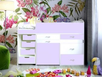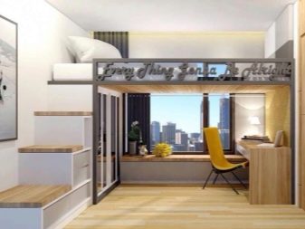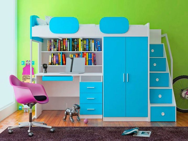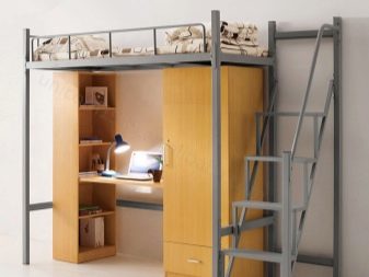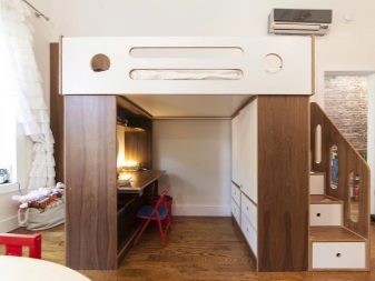 - La présence du meuble en question gardera la pièce bien rangée. L'armoire, qui est fournie dans la conception du lit mezzanine, peut accueillir des articles de garde-robe, des livres, de la papeterie et de nombreux autres articles.
