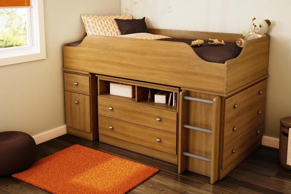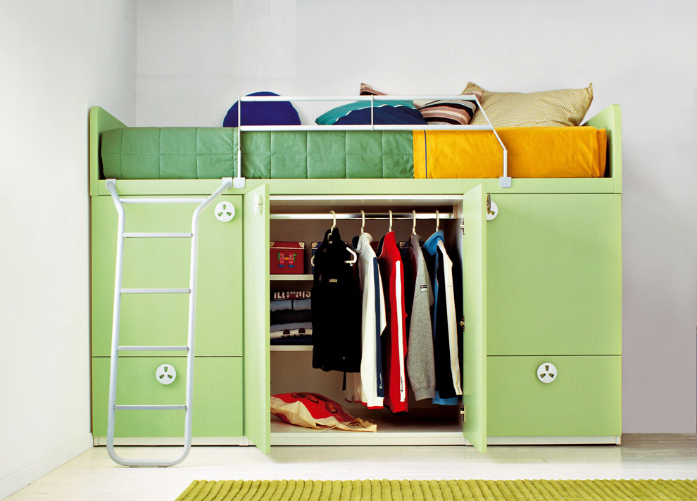 Les meubles en question diffèrent également en hauteur. Différentes options sont achetées pour différents utilisateurs. Pour les adolescents ou les adultes, une structure assez haute peut être idéale, mais pour les très jeunes utilisateurs, un lit mezzanine bas plus sûr avec une armoire peut être idéal.