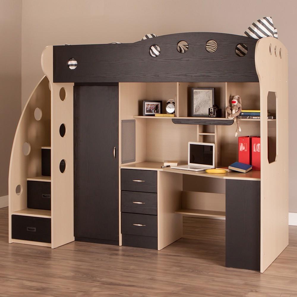 - Les modèles modernes de lits mezzanine avec armoire sont présentés dans un riche assortiment. Les acheteurs peuvent choisir parmi une variété de types de structures de meubles pour leurs maisons.