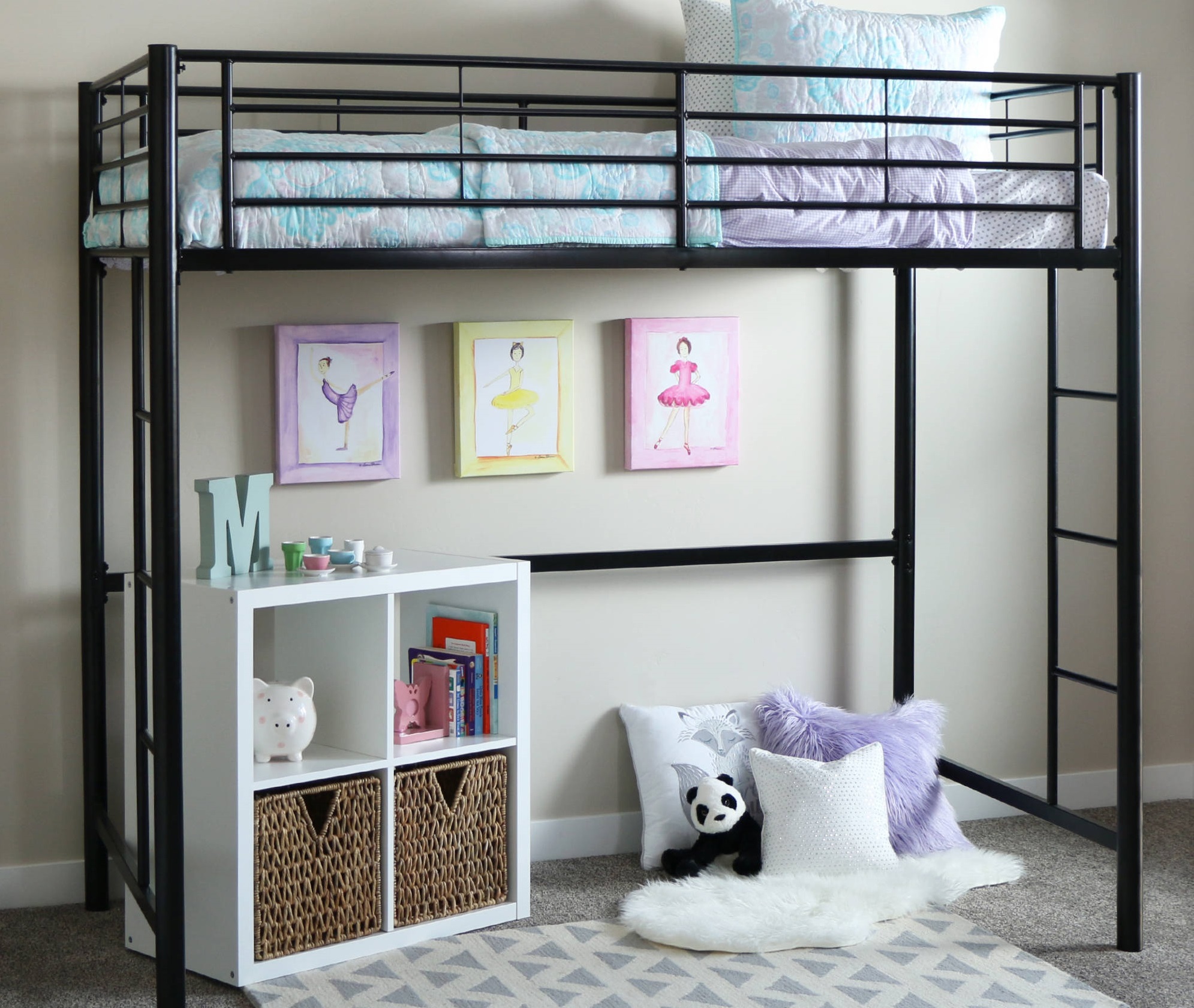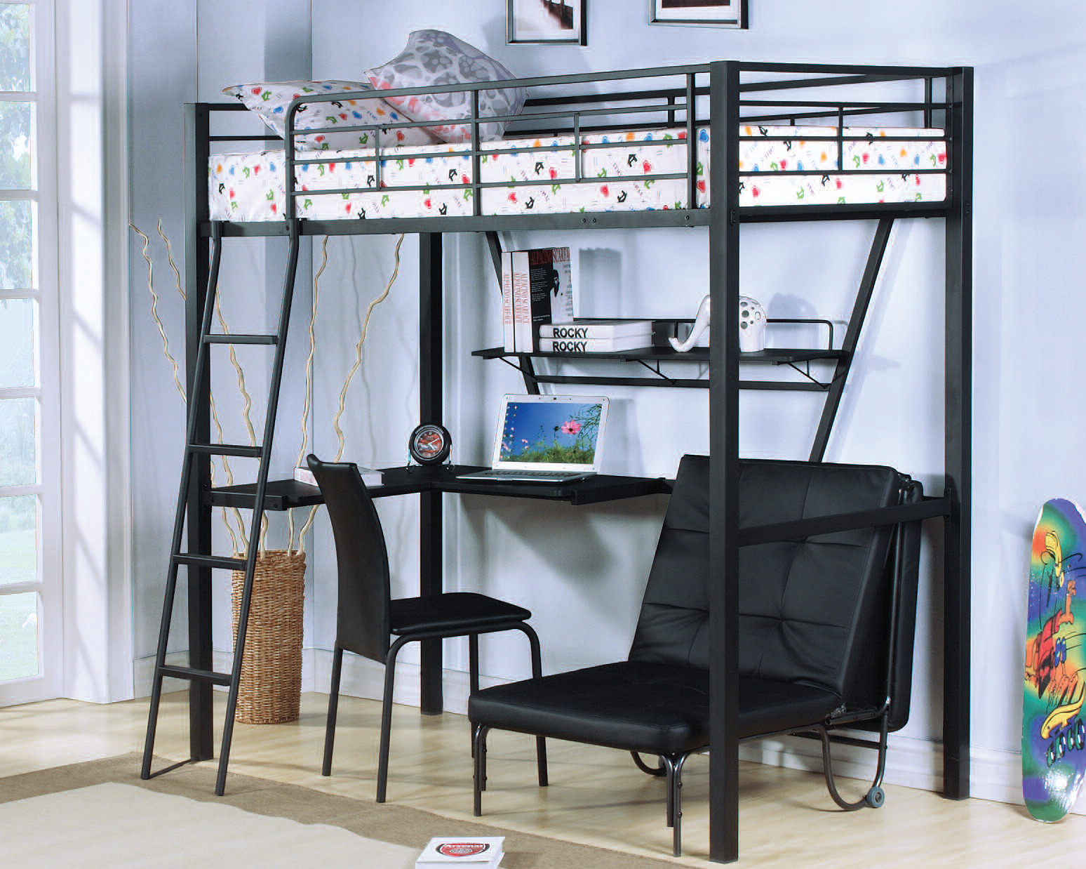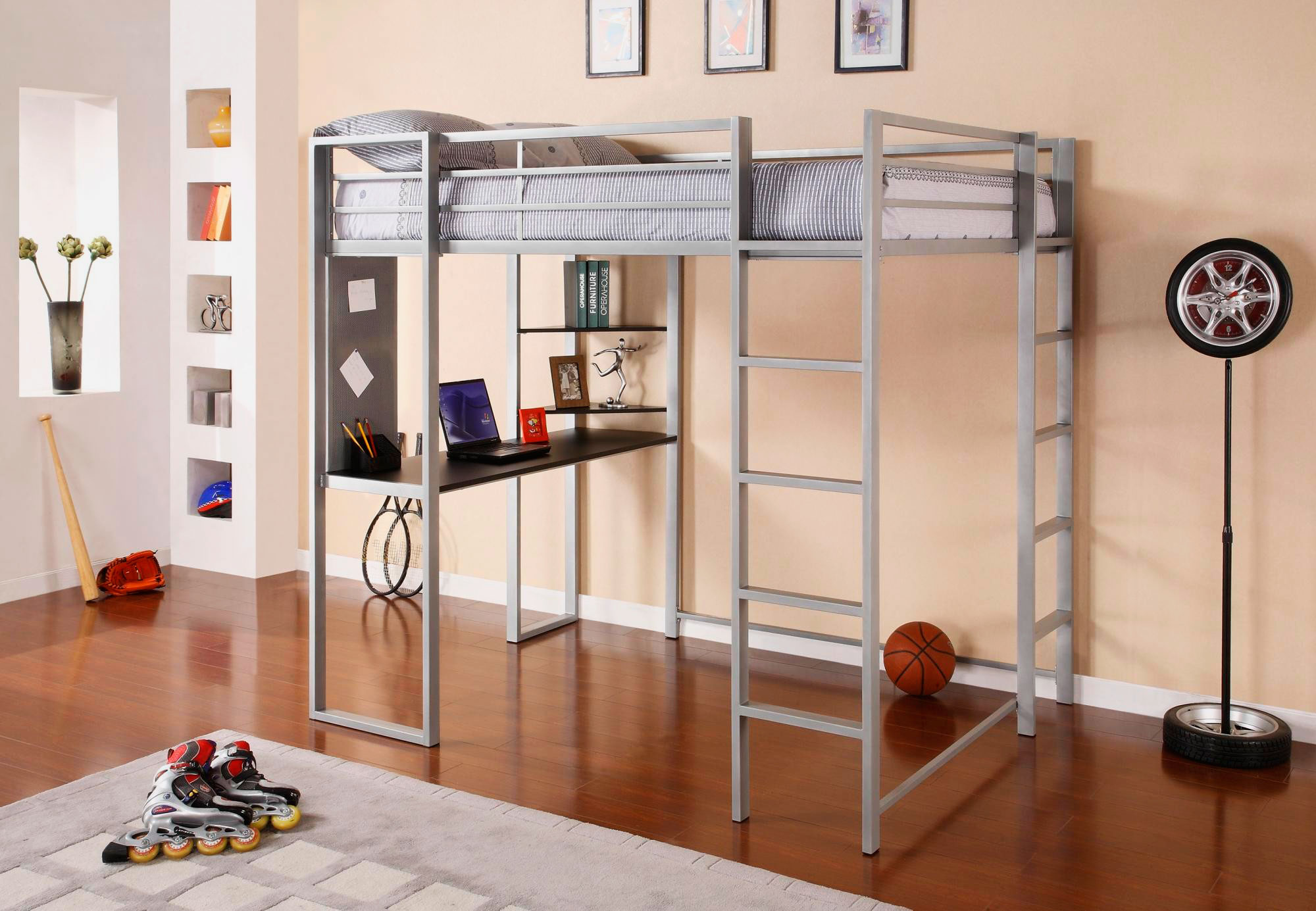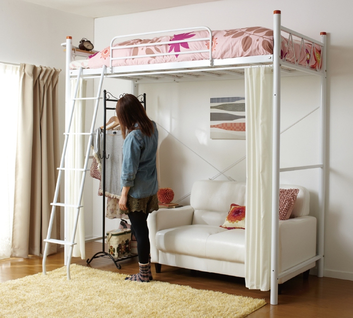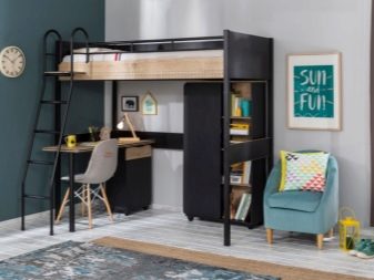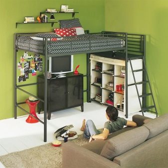 Le design, offrant un espace libre en bas, attire par sa variabilité. Vous pouvez placer n'importe quoi ici, à votre discrétion. Une telle offre est très attractive pour les adolescents.