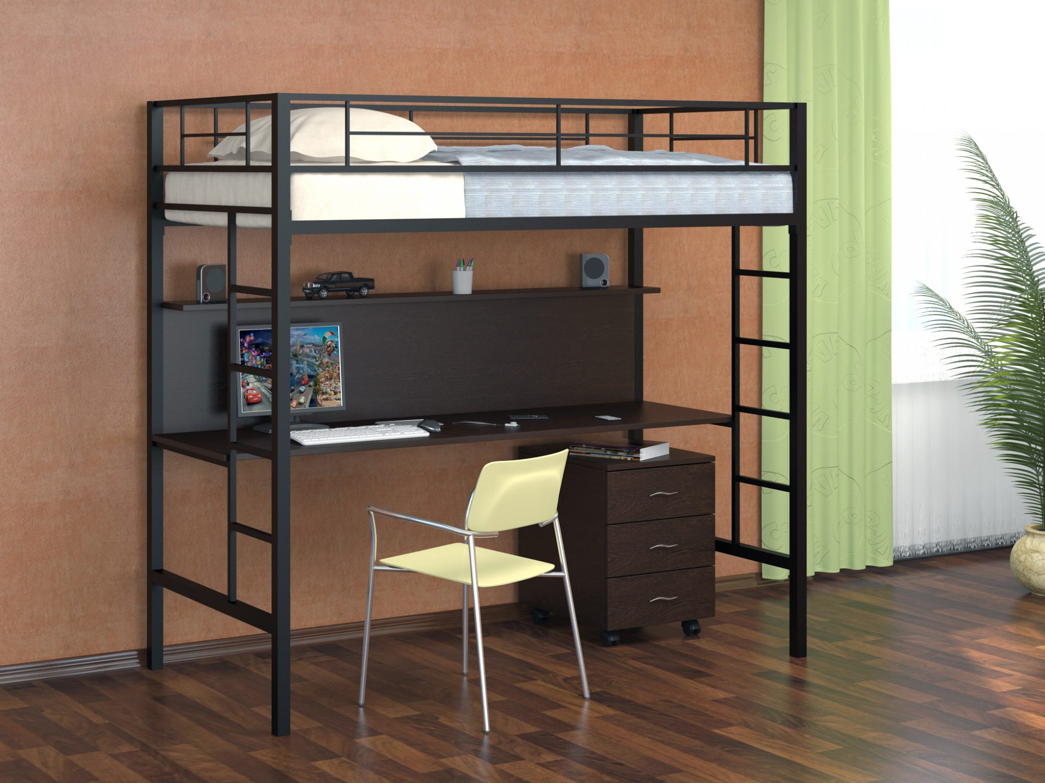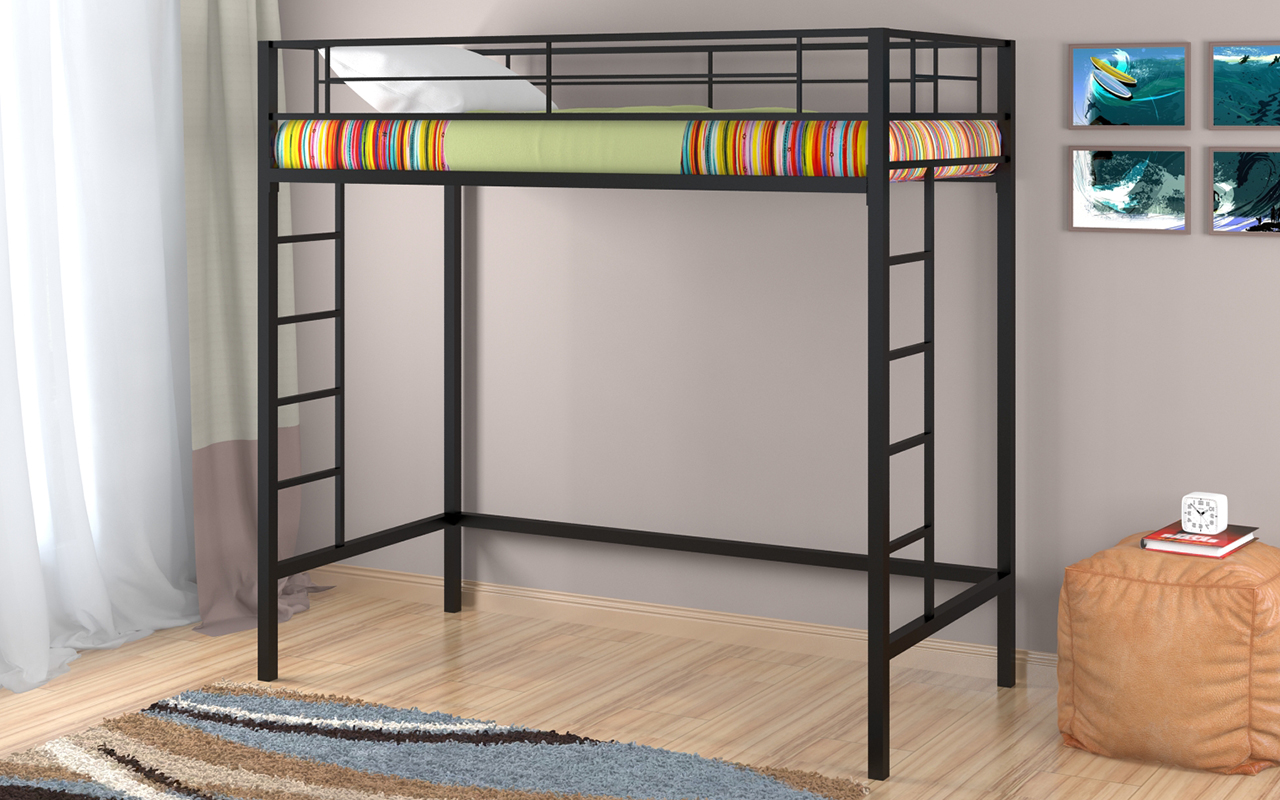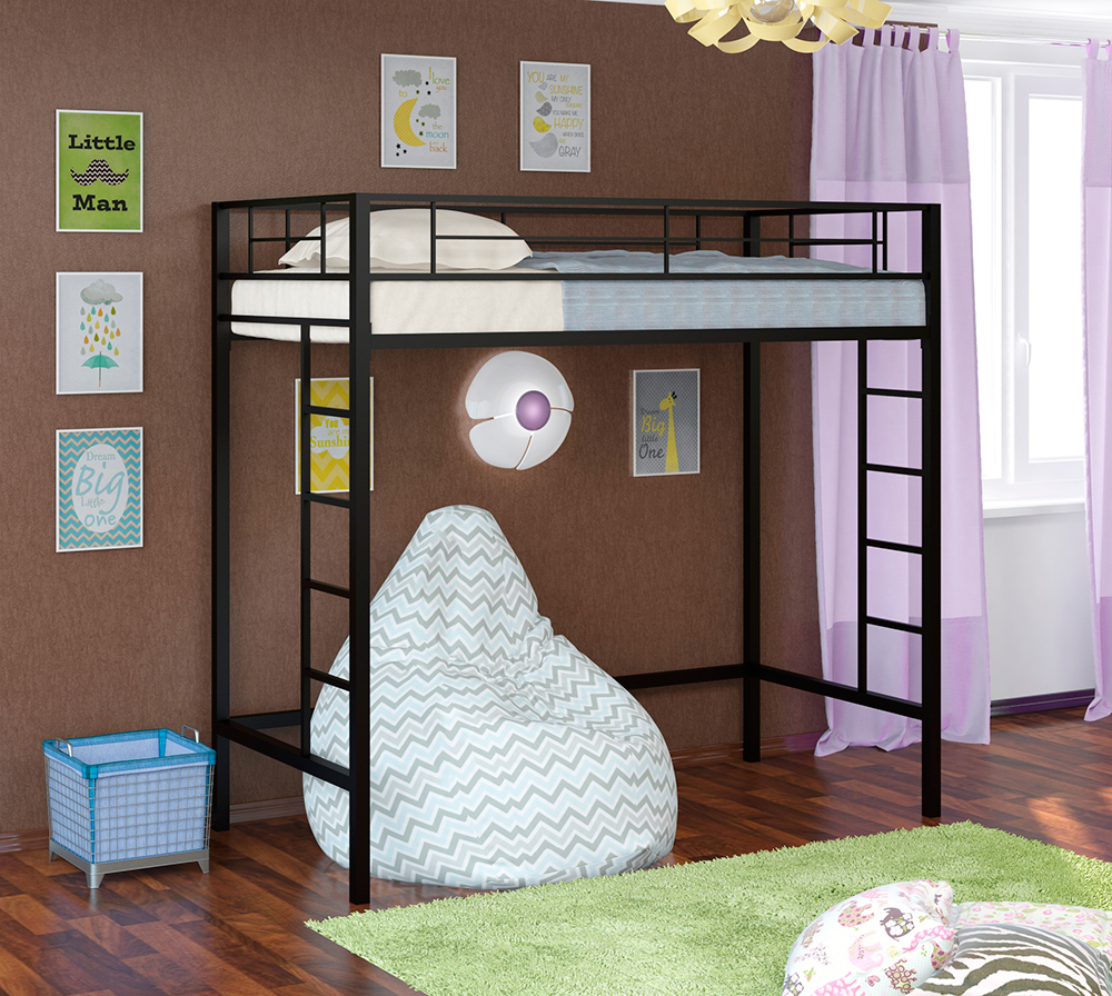 La surface métallique peut être peinte dans n'importe quelle couleur. Le lit mezzanine est choisi en fonction de la situation à l'intérieur de la pièce.