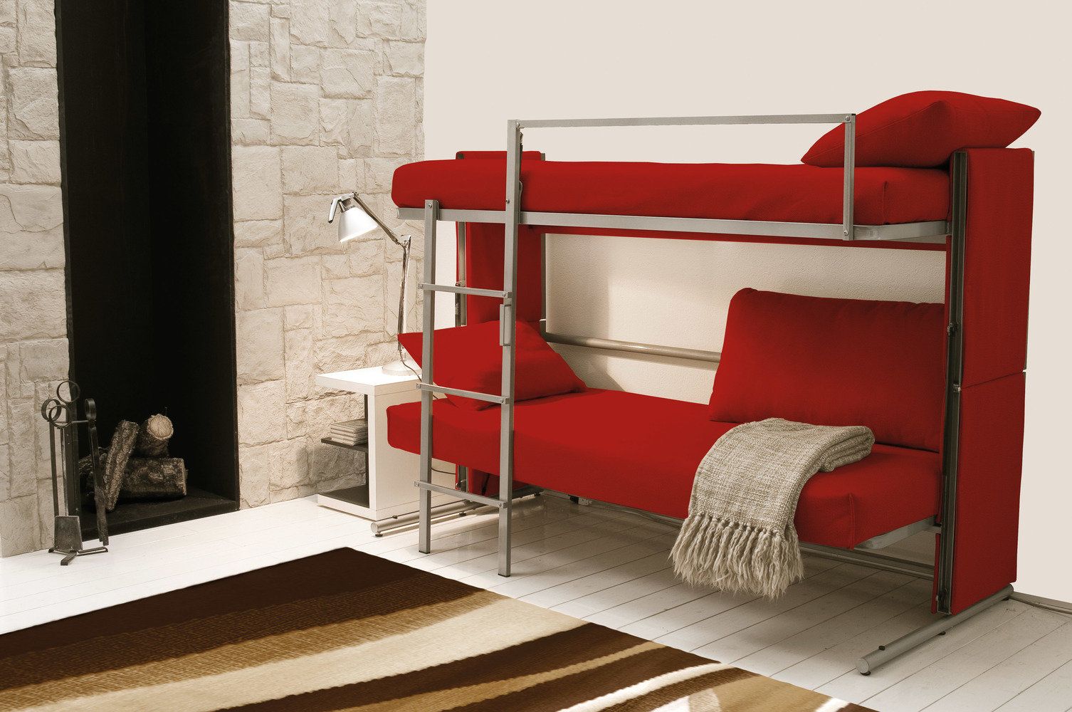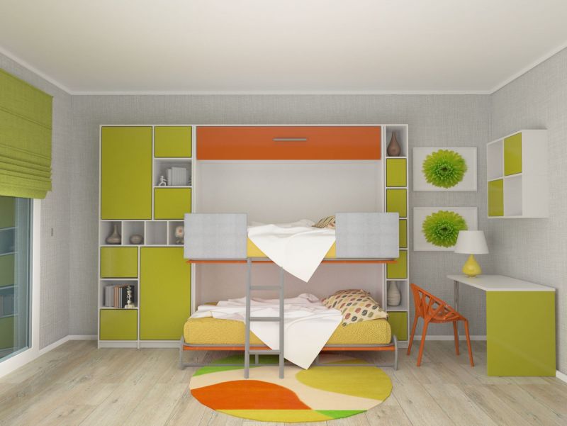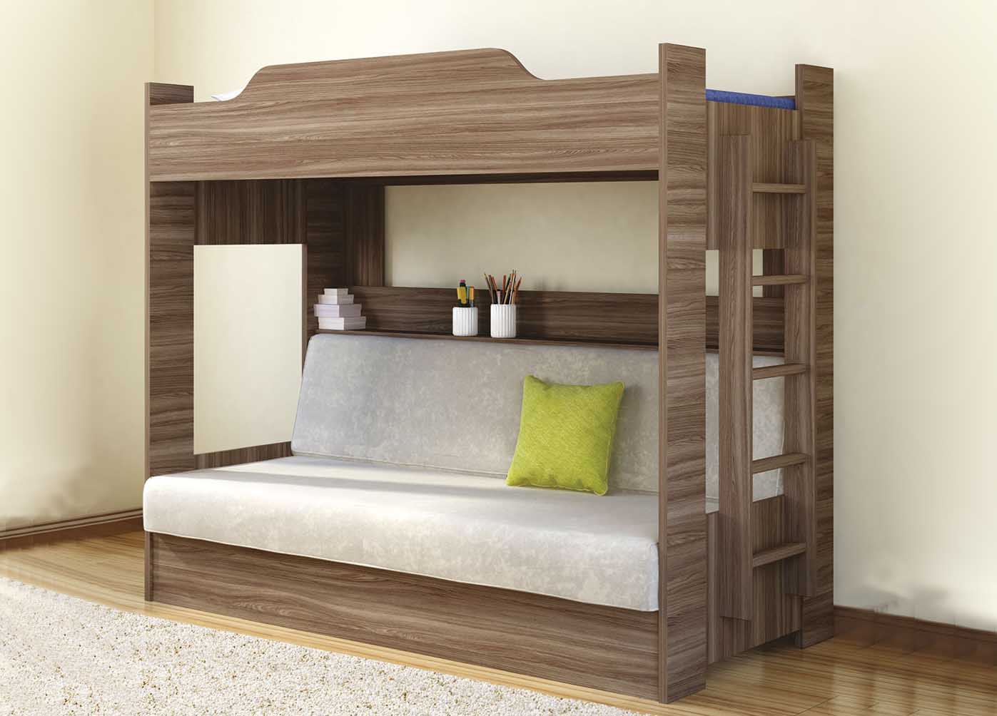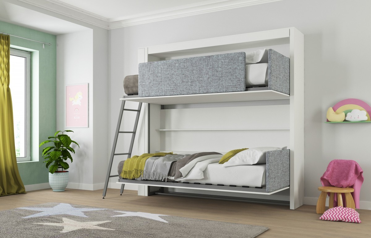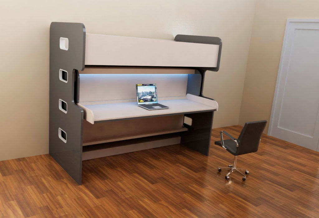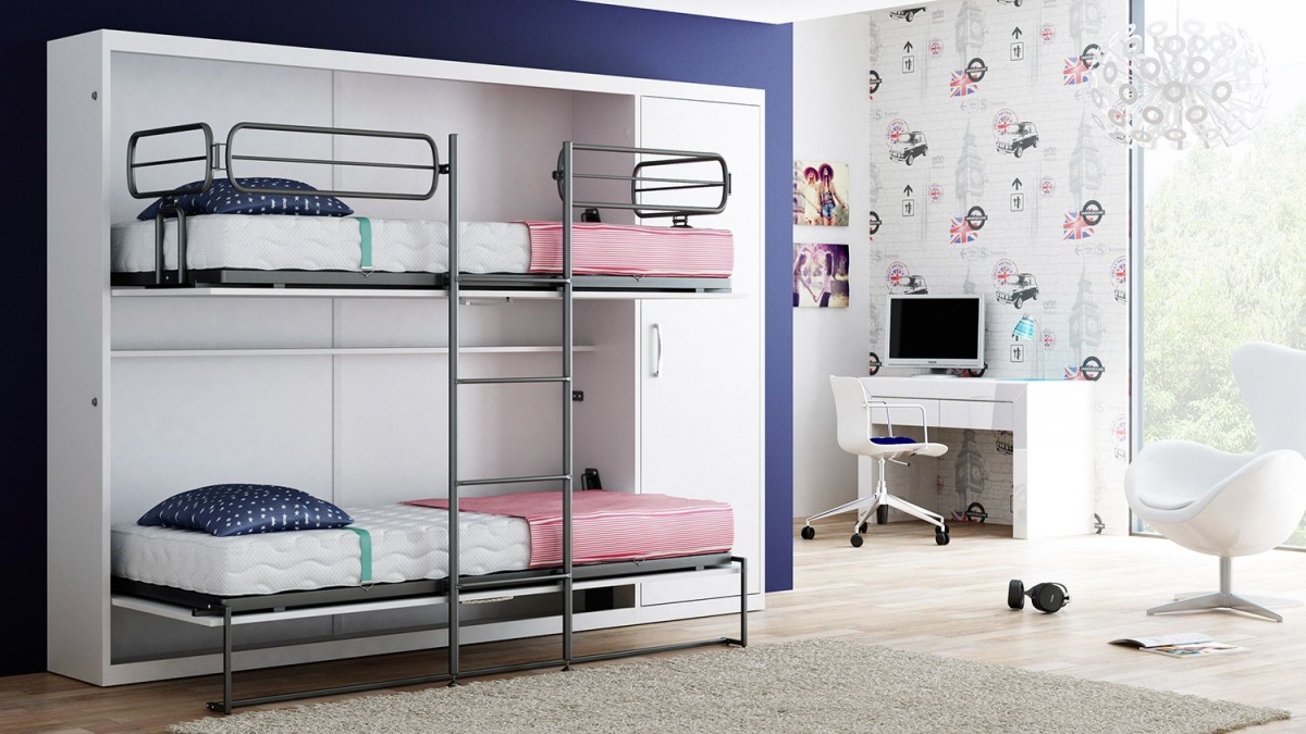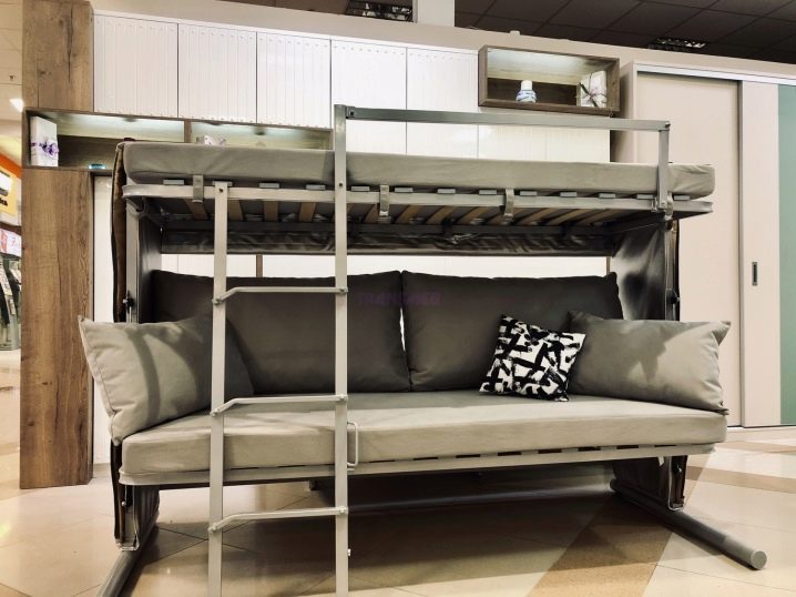 Si vous n'utilisez pas d'éléments supplémentaires tout le temps, examinez de plus près les lits superposés pliants. La partie inférieure peut être convertie en canapé pour la détente, ou, en alternative, le niveau supérieur peut être rangé fixé au mur.