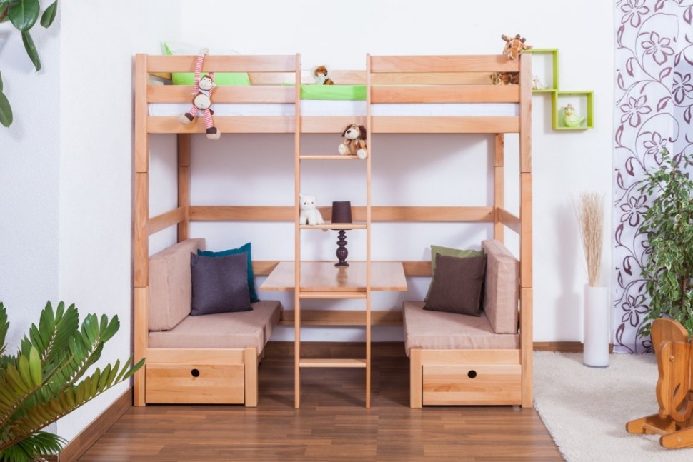 Un lit superposé est un assistant indispensable si la superficie de votre chambre ne vous permet pas de placer deux couchages à part entière. Si, par exemple, vous choisissez un lit pour des jumeaux qui vivent dans la même pièce, alors le lit transformable n'est qu'une aubaine.
