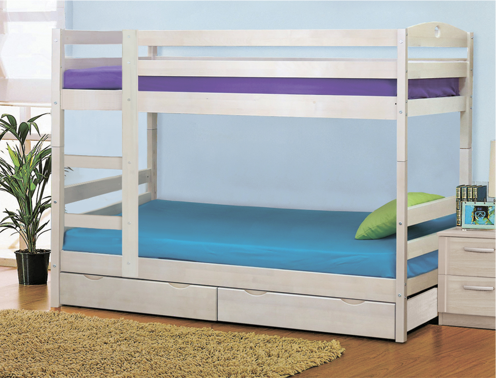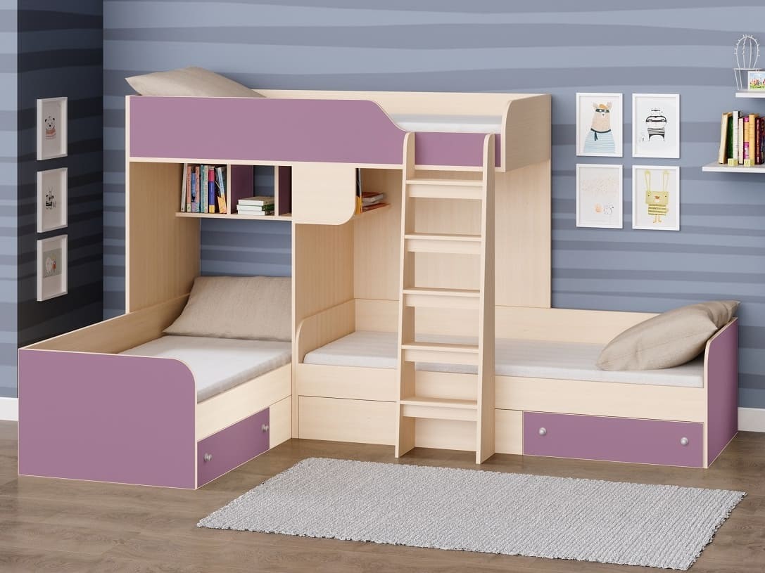 Le modèle le plus simple est de 2 couchettes situées l'une au-dessus de l'autre. Les boîtes de rangement peuvent être cachées sous la couchette inférieure. De plus, les lits doubles peuvent être angulaires lorsque les sections sont situées à gauche et à droite du cadre.