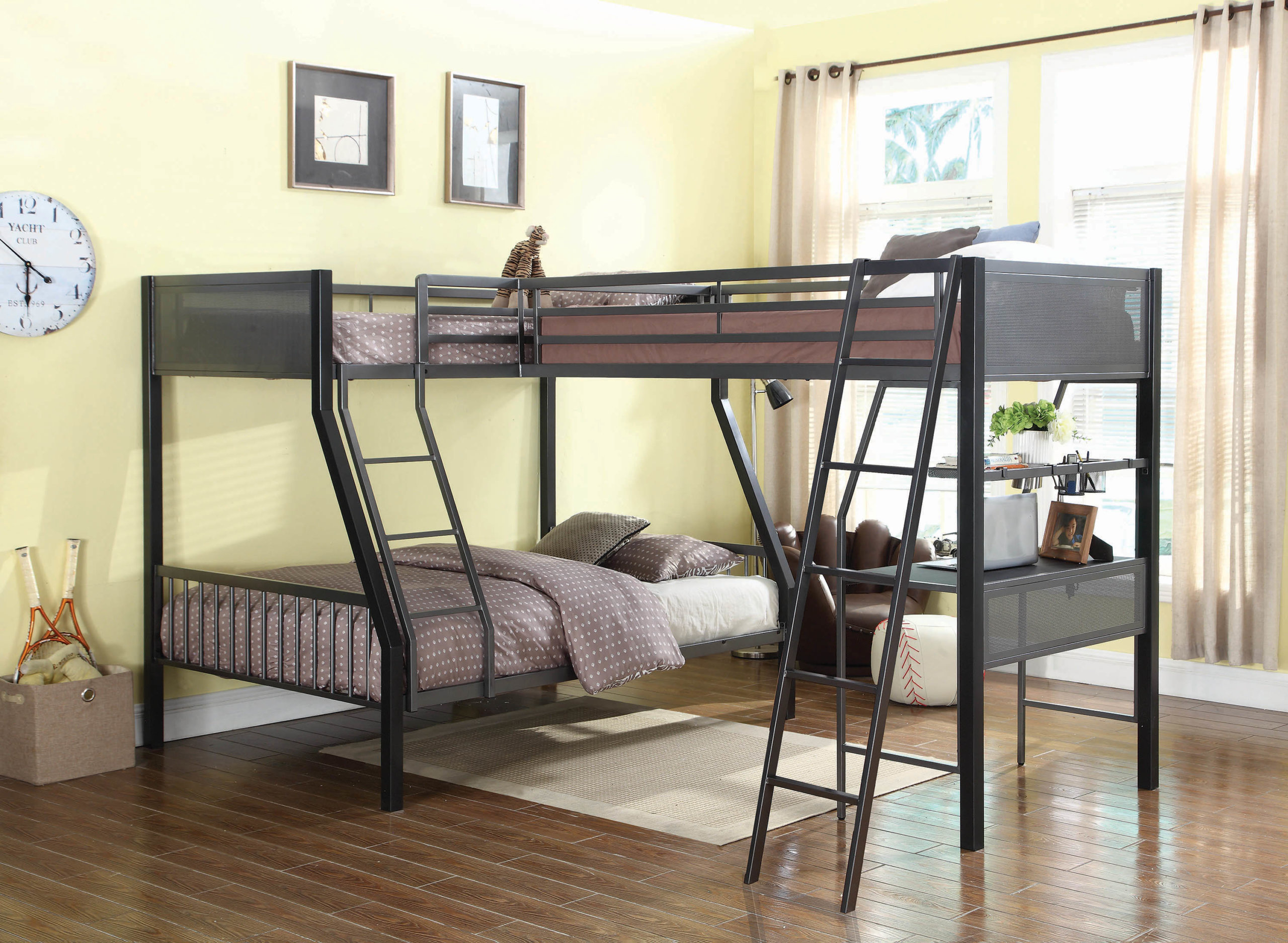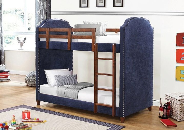 Les plus durables sont les lits superposés en métal. Le métal est durable et peut supporter plusieurs cycles de montage-démontage en cas de déplacement ou de réarrangement. Selon les préférences à l'intérieur, le cadre peut être caché derrière des panneaux décoratifs ou, en général, ne comporter aucun élément supplémentaire.