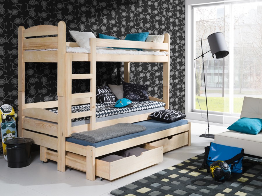 L'option la plus courante et la plus économique est le mobilier en aggloméré ou en MDF. Ces articles sont faciles à assembler et sont disponibles dans une large gamme de couleurs. Souvent, la couleur imite différents types de bois naturel. Vous pouvez également peindre votre lit de couleurs vives ou le recouvrir d'un film décoratif avec un motif. Particulièrement vrai pour les chambres d'enfants. Les décalcomanies en vinyle sont faciles à nettoyer et peuvent être changées au fur et à mesure que votre enfant grandit, à mesure qu'il grandit et change d'intérêt. L'inconvénient est la tendance aux éclats et aux fissures en raison d'une manipulation imprécise. Ensuite, l'humidité peut pénétrer dans ces endroits et le poêle gonflera avec le temps. De plus, les meubles en aggloméré peuvent devenir inutilisables en raison du démontage et du remontage.