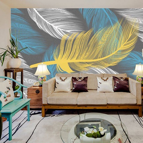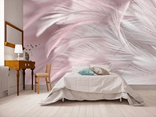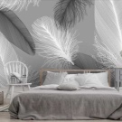 La décoration de locaux avec du papier peint en "plumes" est populaire parmi différentes générations et dans des locaux à des fins diverses. Le papier peint à plumes dans la chambre à coucher est une approche de conception fréquente pour ajouter une touche romantique à un espace intime. De plus, les petites plumes ou les grandes plumes en apesanteur sont chics dans les salons et spectaculaires dans les espaces créatifs. On les trouve sur les murs des hôtels et des spas, dans les salons de beauté et les cafés. C'est un signe moderne de bon goût, d'unité avec la nature et un élément de luxe.