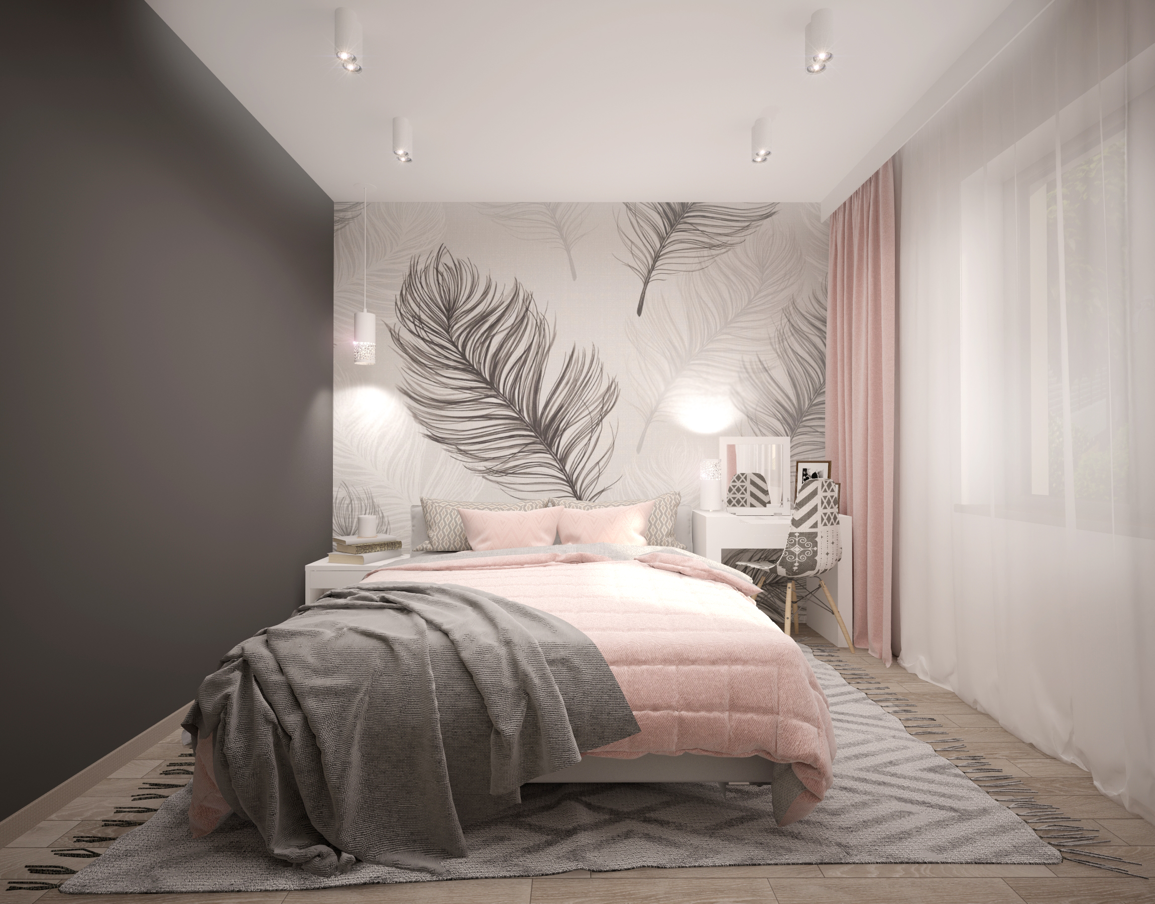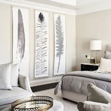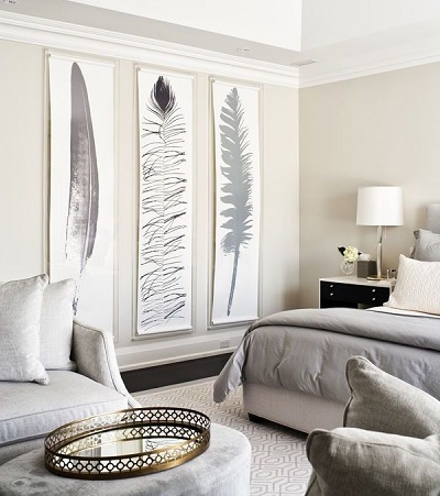 - Pour une pièce au cadre romantique, des toiles aux nuances délicates, décorées de plumes argentées de taille moyenne, conviennent.