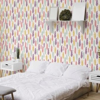 Les papiers peints à plumes sont présentés par les fabricants dans une grande variété de couleurs et de motifs. Par exemple, sur certains, un motif à peine perceptible peut être appliqué, recouvrant la toile de plumes gracieuses avec une légère brume. D'autres sont ornés de plumes de paon brillantes, faisant du mur l'accent intérieur principal.