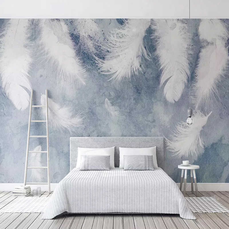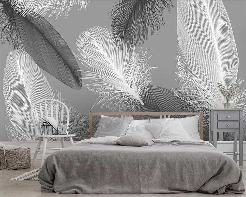 Papier peint avec des plumes à l'intérieur de la chambre