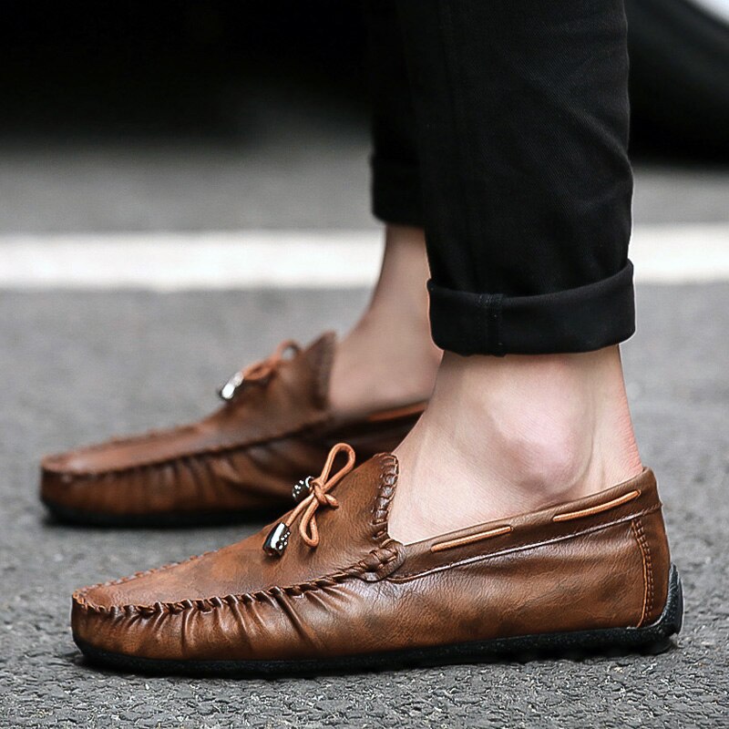 - les mocassins se glissent sous un pantalon en combinaison avec un t-shirt et une veste, c'est un style plus libre;