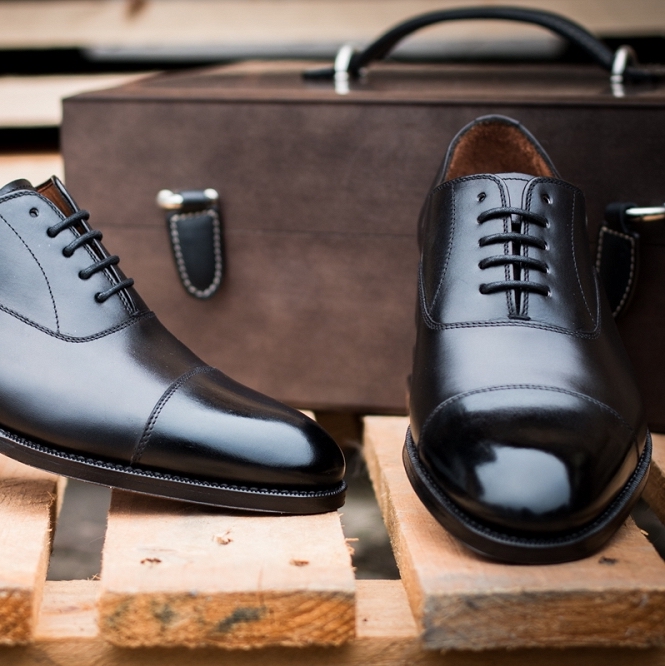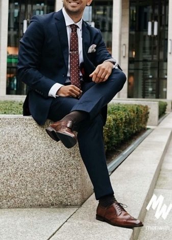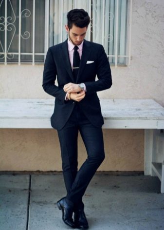 - Chaussures noires classiques combinées avec un costume d'affaires. La photo montre également quels autres modèles de chaussures conviennent à ce look.