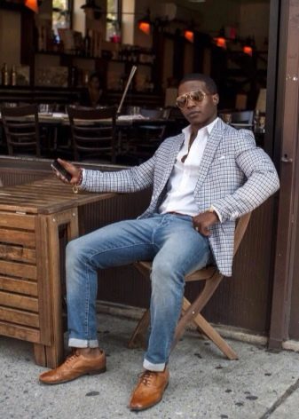 - Un look qui combine des options classiques et décontractées. Les créateurs ont assorti les chaussures marron à ce style.
