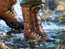 Les chaussures en cuir sont parfois utilisées pour se protéger de l'eau. Dans celui-ci, vous pouvez marcher en toute sécurité sur n'importe quelle boue, à travers des flaques d'eau, sur des chemins de terre boueux (s'il y a un tel besoin). Mais l'inconvénient des chaussures en cuir est qu'elles doivent être adaptées le plus strictement possible à la taille du pied. Sinon, les callosités, les cors et l'usure rapide des bottes ou des bottes elles-mêmes sont inévitables.