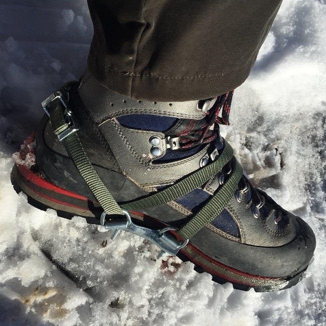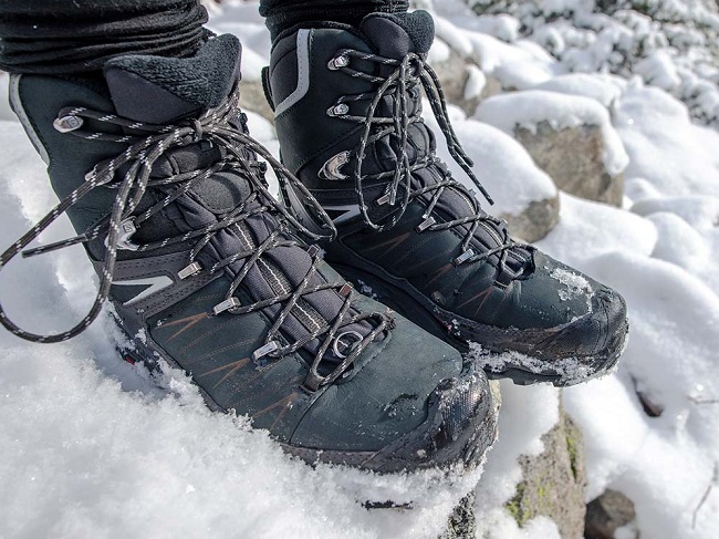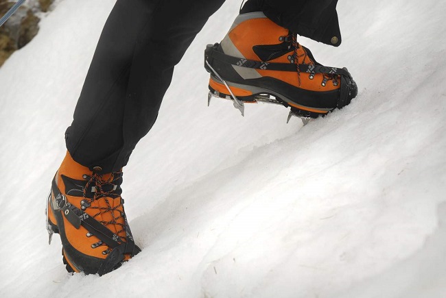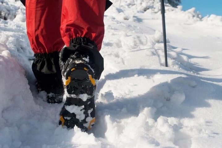 Pour randonner en montagne en hiver, vous aurez besoin de chaussures à trois couches conçues spécifiquement pour les ascensions en haute altitude en présence de neige et de glace. De telles chaussures prévoient certainement des attaches pour "crampons". La botte extérieure doit atteindre presque le genou pour rester au chaud autant que possible.