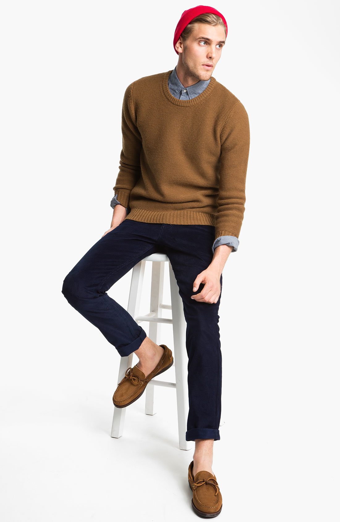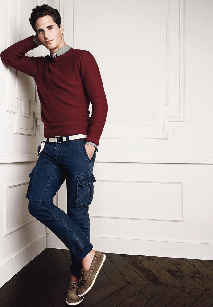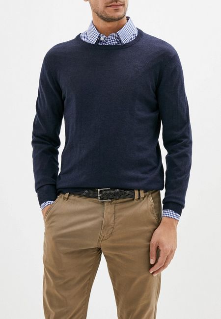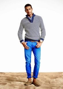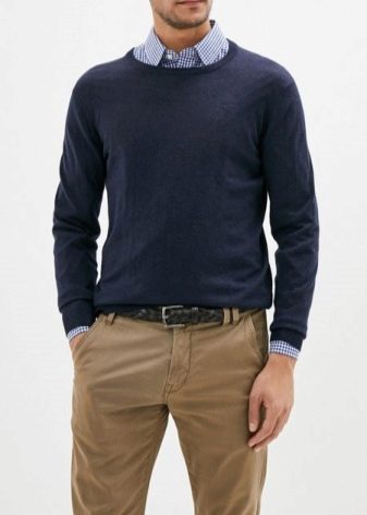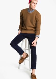 Pour ceux qui préfèrent le style décontracté ou décontracté, vous pouvez suggérer un nœud composé d'un pull à col rond bleu et d'un pantalon chino marron clair... Les modèles en cuir bleu naturel conviennent à ce look.