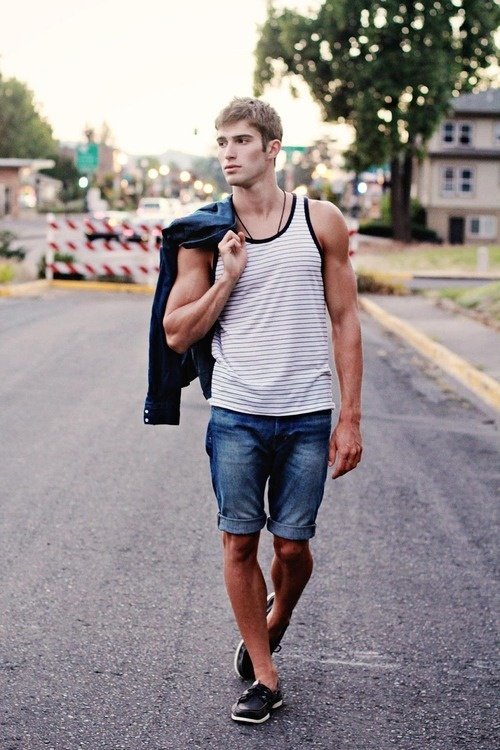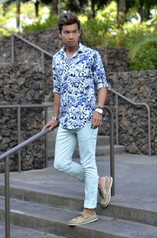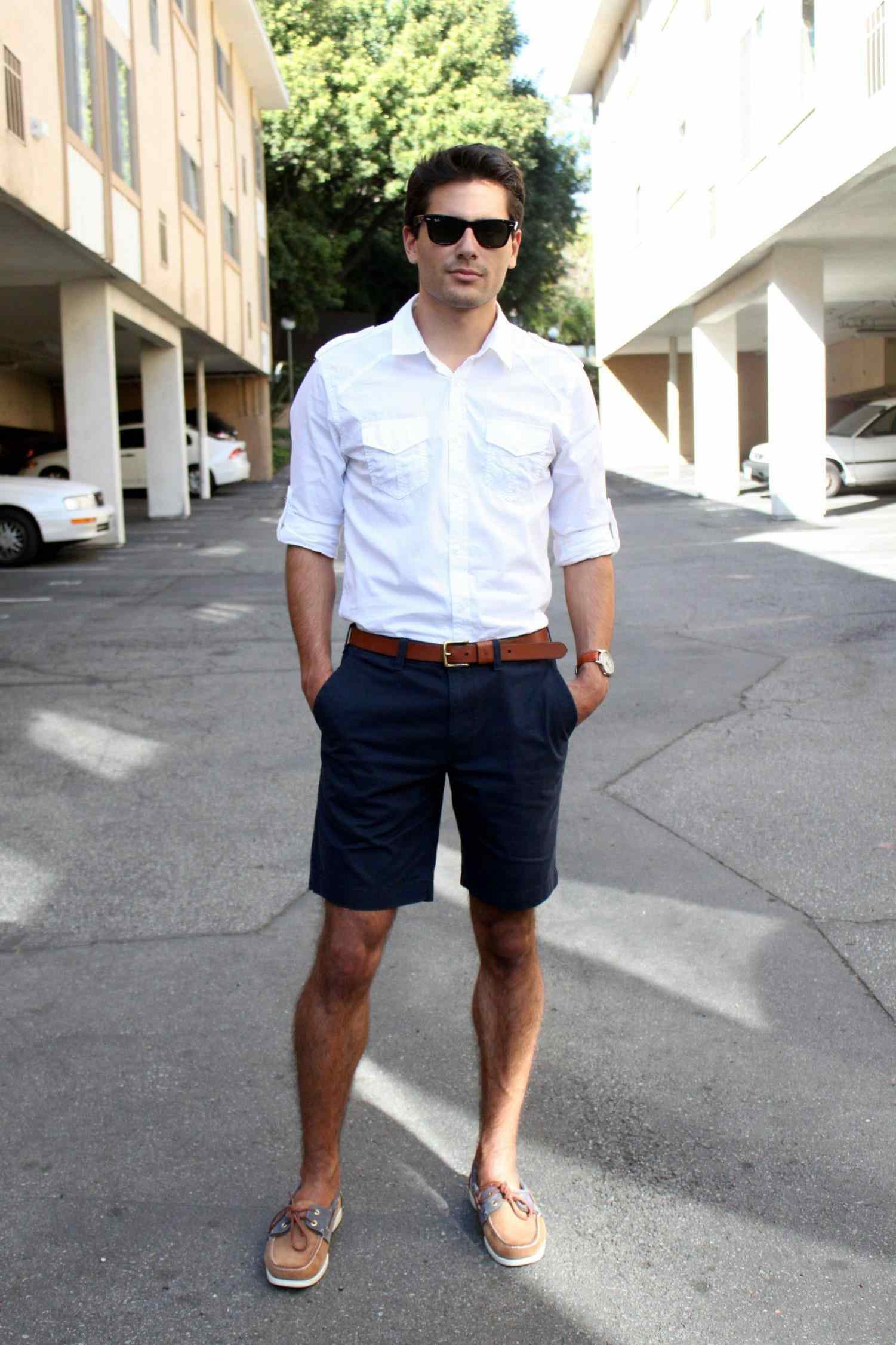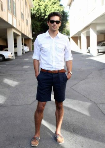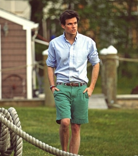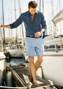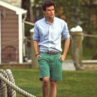 Aussi un short allongé vert et une chemise bleue classique auront fière allure. Bien qu'il soit intéressant de considérer qu'il est préférable de diluer l'image avec des topsiders de nuances brunes.