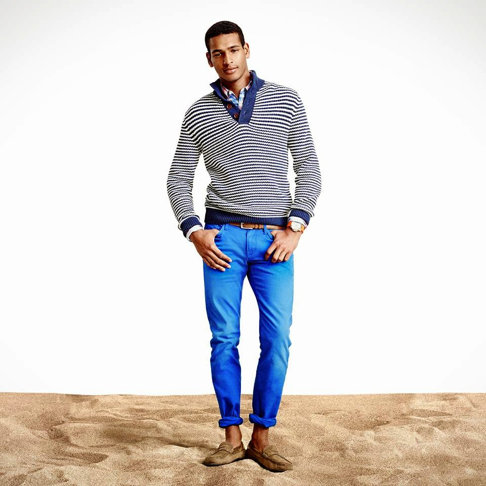 Un complément aux vêtements de style nautique est le plus souvent les topsiders marron classiques. Il convient de rappeler que les modèles de chaussures pour hommes conviendront à n'importe quel look choisi. L'essentiel est la possibilité de combiner des vêtements et des chaussures en couleur.