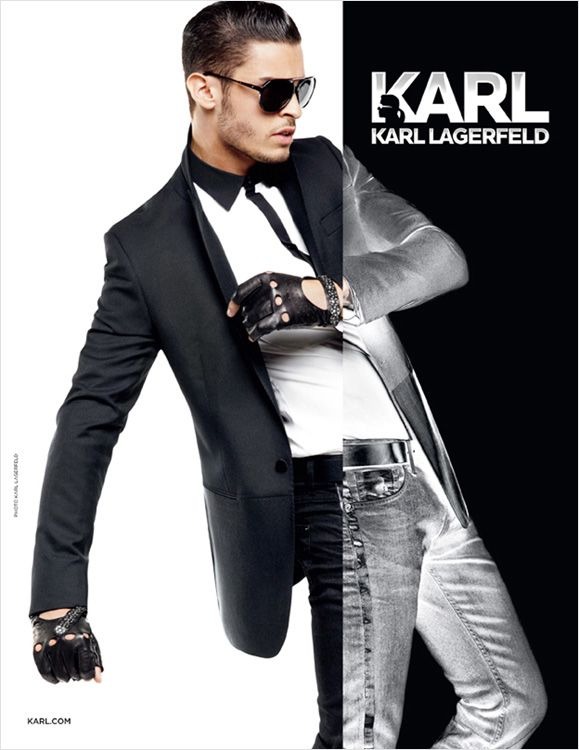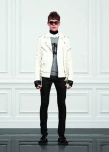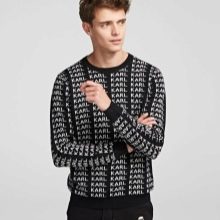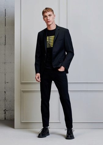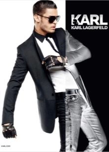 - Pantalon. L'assortiment comprend des pantalons en laine, des jeans droits et bouillis, des pantalons de costume, des pantalons de motard, des pantalons skinny classiques, des pantalons de survêtement. Le jean Karl Legend à l'effigie du créateur est très original.