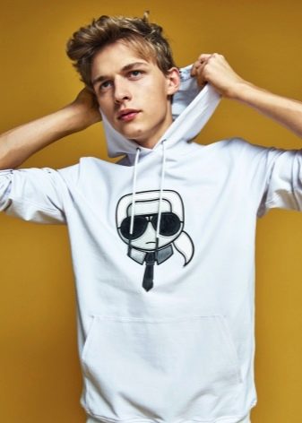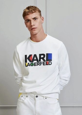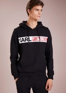 - Sweats et sweats à capuche. Les jeunes l'aimeront sûrement, car ils sont fabriqués dans une large gamme de couleurs. En plus des sweats gris et noirs, des modèles sont disponibles en rouge et bleu. De nombreux sweats à capuche ont un lettrage original de Karl Lagerfeld.