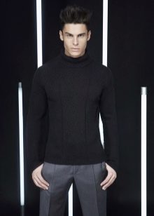 - Pulls tricotés. Il n'y a pas tellement de modèles de pulls, mais il existe des modèles monophoniques de base dans lesquels il n'y a rien de superflu, ainsi que des cols roulés tricotés avec des inscriptions mono.