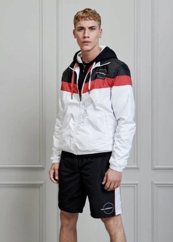 Pour les hommes sportifs, nous recommandons de regarder de plus près un nœud avec un short et une veste légère avec une fermeture éclair. La combinaison de couleurs noir, blanc et rouge soulignera sûrement le goût particulier d'un homme.