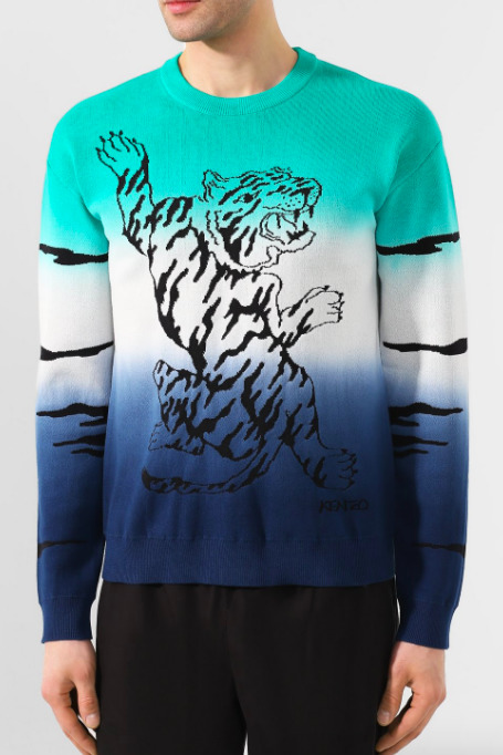 Le motif le plus célèbre utilisé par la marque pour décorer ses pièces est le motif tigre emblématique de Kenzo. Pour la première fois, il a été utilisé pour décorer les pulls dits prédateurs. Très souvent, le tigre est brodé du logo sur divers vêtements et accessoires. Les articles brodés sont très demandés, en particulier les pulls Cloud Tigers.