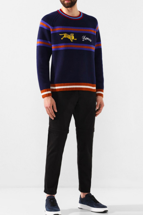 - Disponible dans la collection Kenzo actuelle des shorts aux imprimés uniques, ainsi que des jeans slim, des pantalons classiques et des pantalons. Nous vous recommandons de regarder de plus près les pantalons de survêtement avec logo en relief et les pantalons chino en bleu.