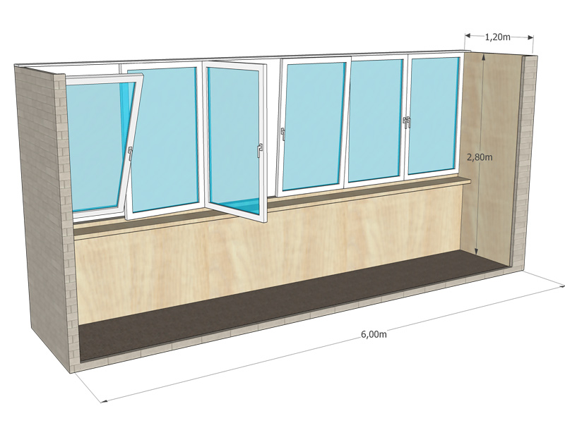 Lors de la conception, tout est important - des paramètres d'ouverture de la fenêtre au type d'isolation. Il convient de prêter attention au parapet, qui deviendra la base du futur vitrage de la loggia de six mètres. Un rebord de fenêtre sera situé sur le parapet. Des mesures correctes sont nécessaires, car la qualité de l'installation, les fonctions finales de conservation de la chaleur de la pièce et, bien sûr, l'apparence du balcon en dépendent. Il est nécessaire de mesurer correctement la largeur et la longueur. Parfois, les espaces de balcon ont de petites différences, tandis que l'erreur peut atteindre 7 centimètres.