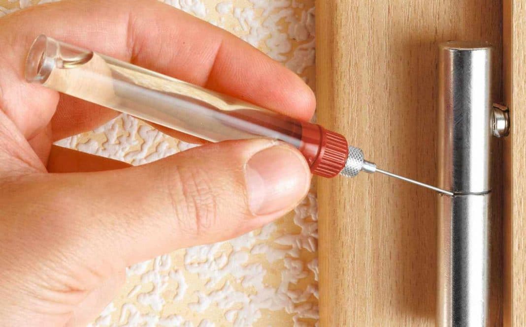 Les experts recommandent d'utiliser uniquement des composés spéciaux pour lubrifier les charnières. Le lubrifiant doit être exempt de particules solides qui pourraient endommager le mécanisme.Il est préférable d'acheter immédiatement une huile spéciale qui convient également à la lubrification des charnières de fenêtre. Il est nécessaire de lubrifier les charnières avec de l'huile de temps en temps afin qu'elles ne se déforment pas et remplissent leur fonction principale pendant longtemps.