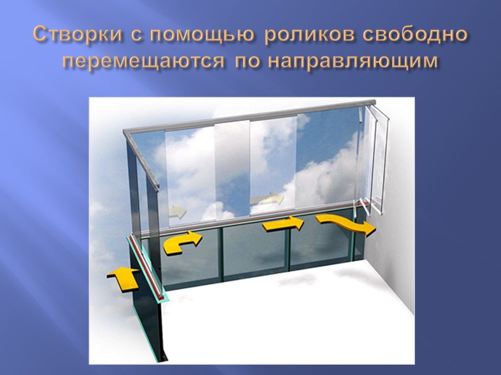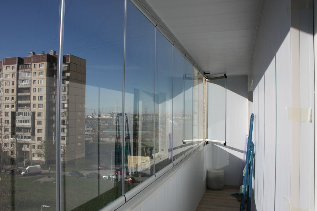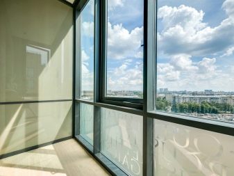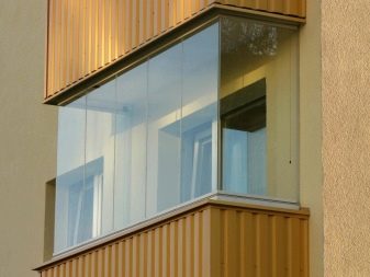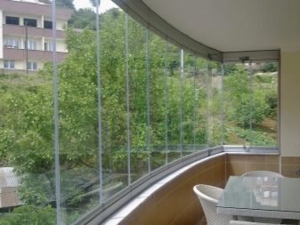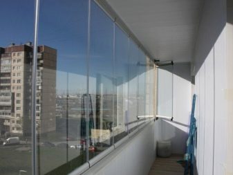 Le vitrage sans cadre se présente sous la forme de profilés fixés au plafond et à la plaque de fond, dans lesquels sont insérés des châssis en verre. Leur résistance n'est pas inférieure à 200 MPa. La particularité de cette option réside dans la structure des sections. Chacune des sections d'en haut et d'en bas est insérée dans des guides vers les supports de balcon, les sections aveugles sont connectées en un seul panneau.