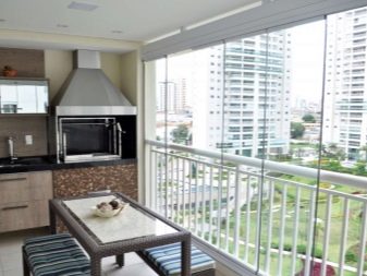 Aujourd'hui, sa popularité augmente rapidement. La principale caractéristique est l'absence de poteaux verticaux. Ce principe donne l'éclairage maximal possible et fait référence aux options froides pour organiser l'espace du balcon.