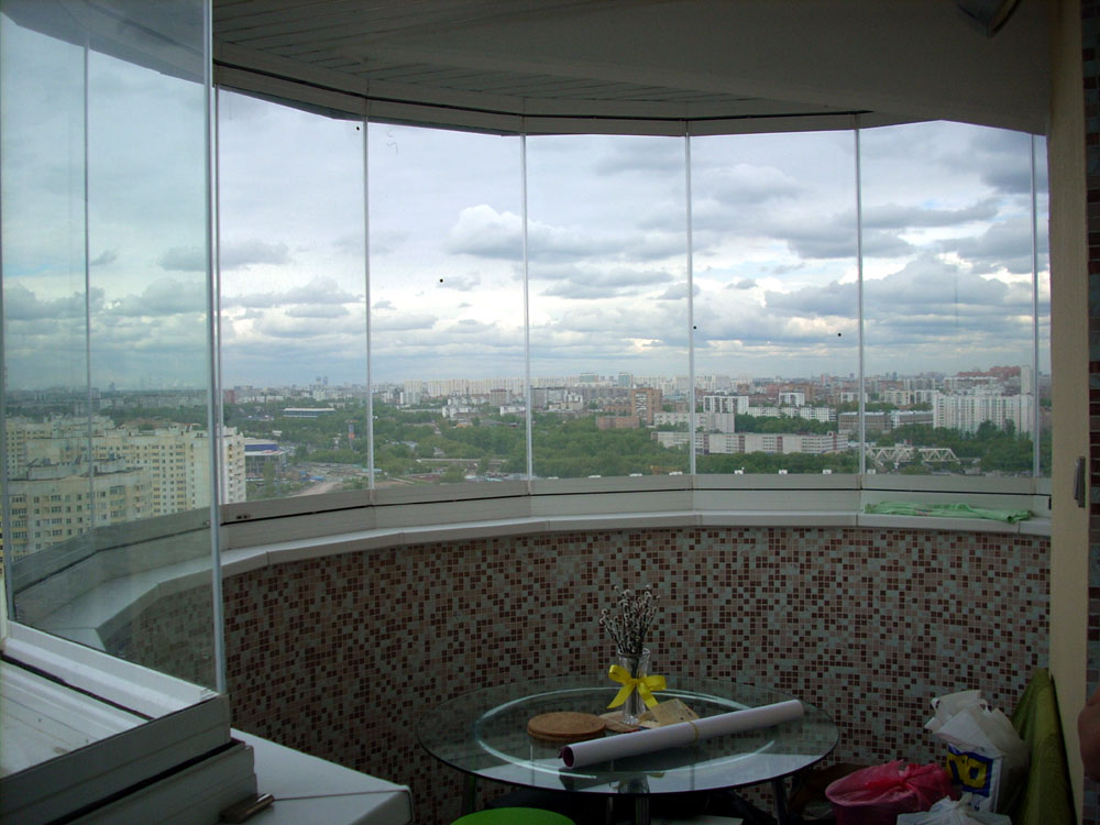 Glaçage à corde. Un profilé est installé le long d'un périmètre semi-circulaire divisé en secteurs, créant une structure angulaire. Ensuite, les cadres sont remplis de fenêtres à double vitrage. Cette méthode est considérée comme l'une des plus simples et des moins chères, utilisée dans le vitrage d'espaces non standard. En termes esthétiques, il est loin d'être le meilleur, il a de faibles taux d'économie d'énergie.