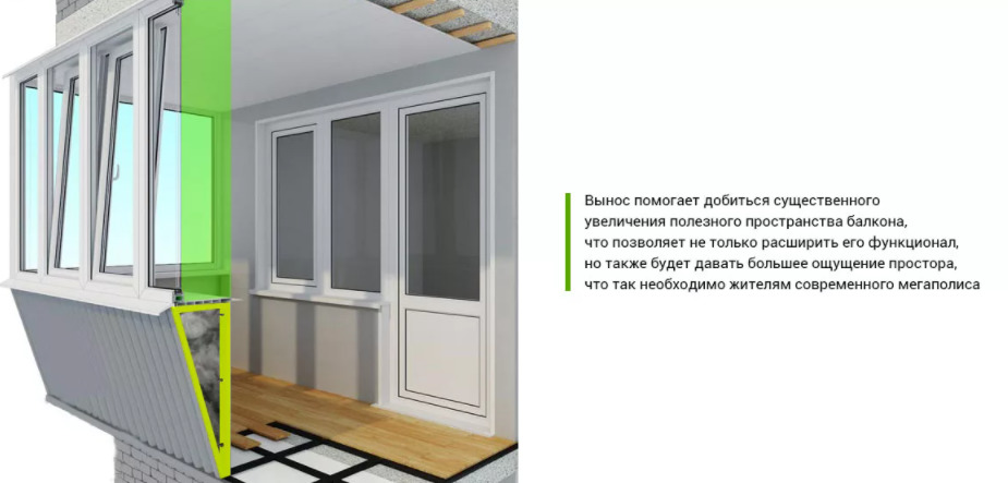 Habituellement, les experts conseillent cette option aux clients si la surface disponible n'est pas assez grande. Puisqu'il n'est pas possible de "construire" la plaque de fond, du moins dans un immeuble à appartements, le périmètre du vitrage est augmenté, ce qui est tout à fait faisable pour les balcons avec une clôture - il sera agrandi à son sommet.