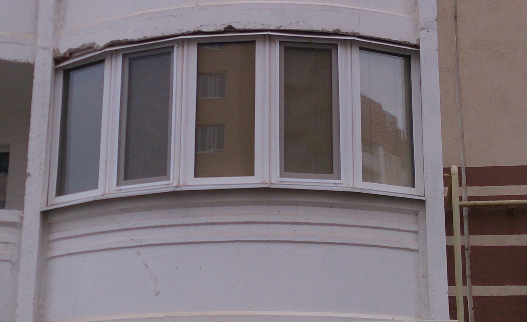 - Fenêtre en saillie. Avec cette solution, le verre reste plat, mais un profil semi-circulaire est utilisé dans l'installation, obtenant des angles moins vifs entre les secteurs individuels. Les balcons en baie vitrée sont plus chers que les balcons en corde, mais ils sont beaucoup plus chauds et plus fiables.