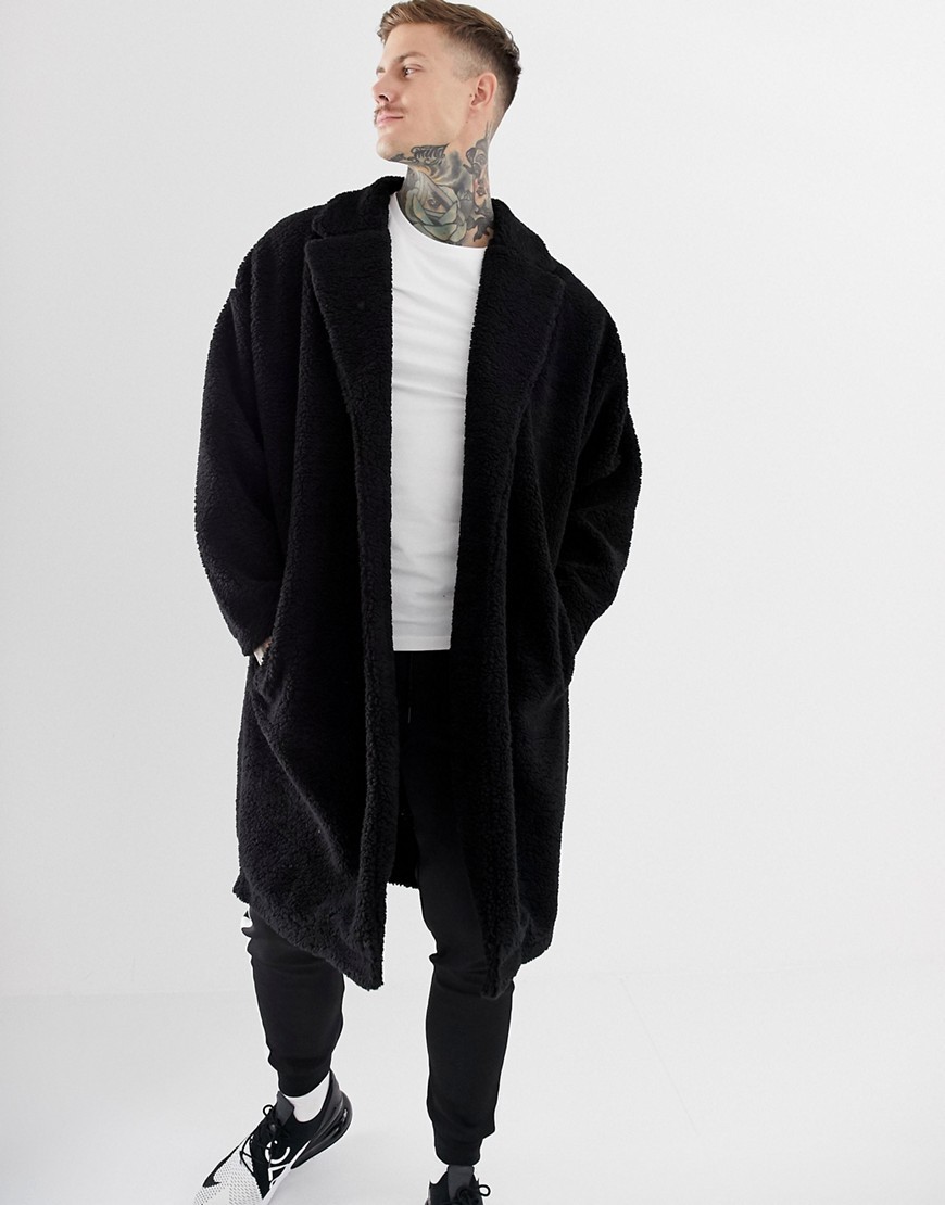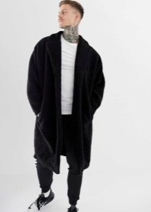 Style préféré des hommes à la silhouette imparfaite. Un pelage volumineux masquera avec succès les défauts possibles. En même temps, l'oversize noir ne perd pas de son élégance et ne retient pas le mouvement.