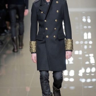 Ce style a un nom tacite - l'armée. Sa coupe n'a pas l'air banale et il est peu probable qu'elle soit du goût des hommes conservateurs. De plus, les modèles à double boutonnage se démodent périodiquement. Par conséquent, une telle chose, même en noir classique, ne devrait pas être présente dans la garde-robe en tant que seul vêtement d'extérieur.